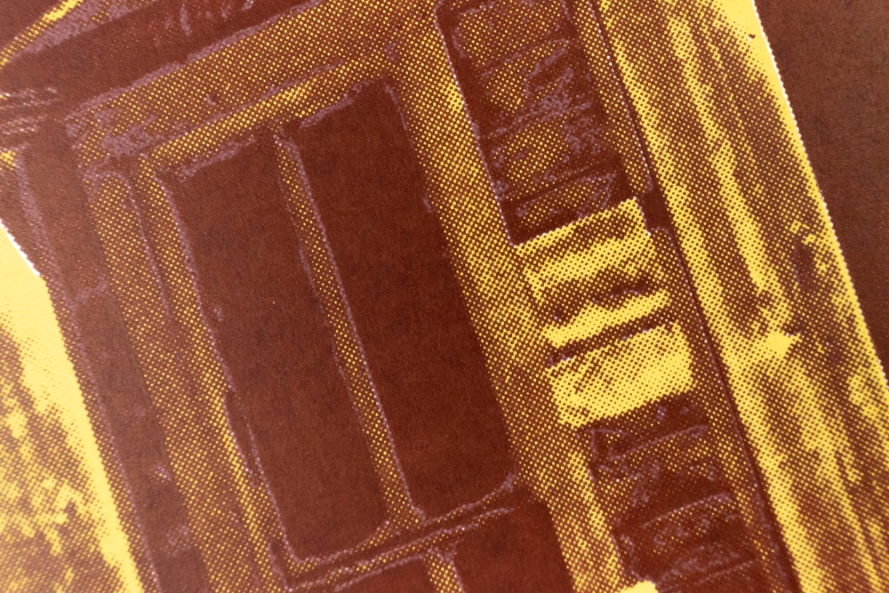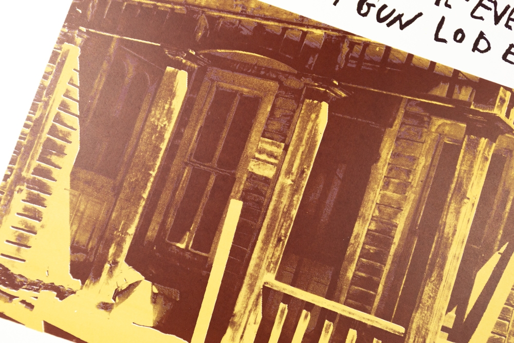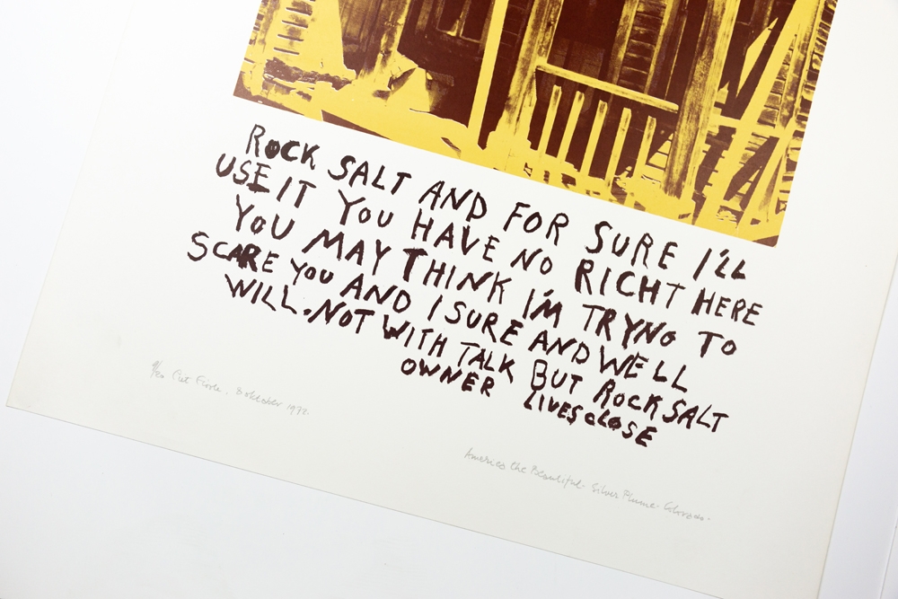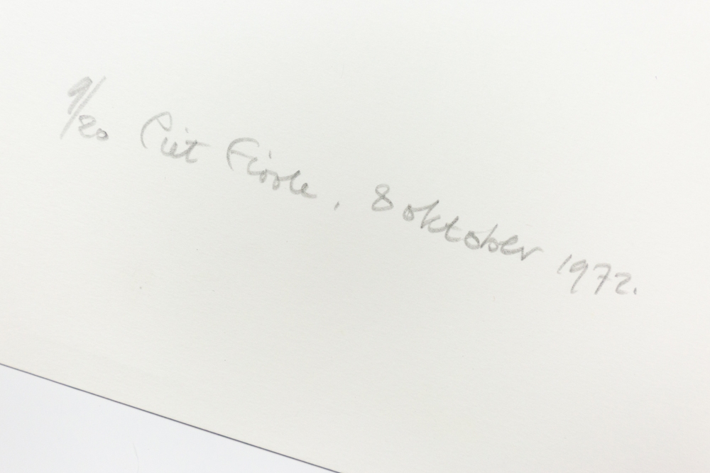 Zeefdruk van Piet Fioole, Nederlands collagist, schilder, tekenaar, zeefdrukker en fotograaf. De zeefdruk dateert uit 1972 en is met de hand getiteld, gesigneerd en genummerd door de kunstenaar.
