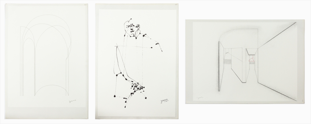 3 prints by Gaston Bertrand in a collection folder. The works are signed in the print.