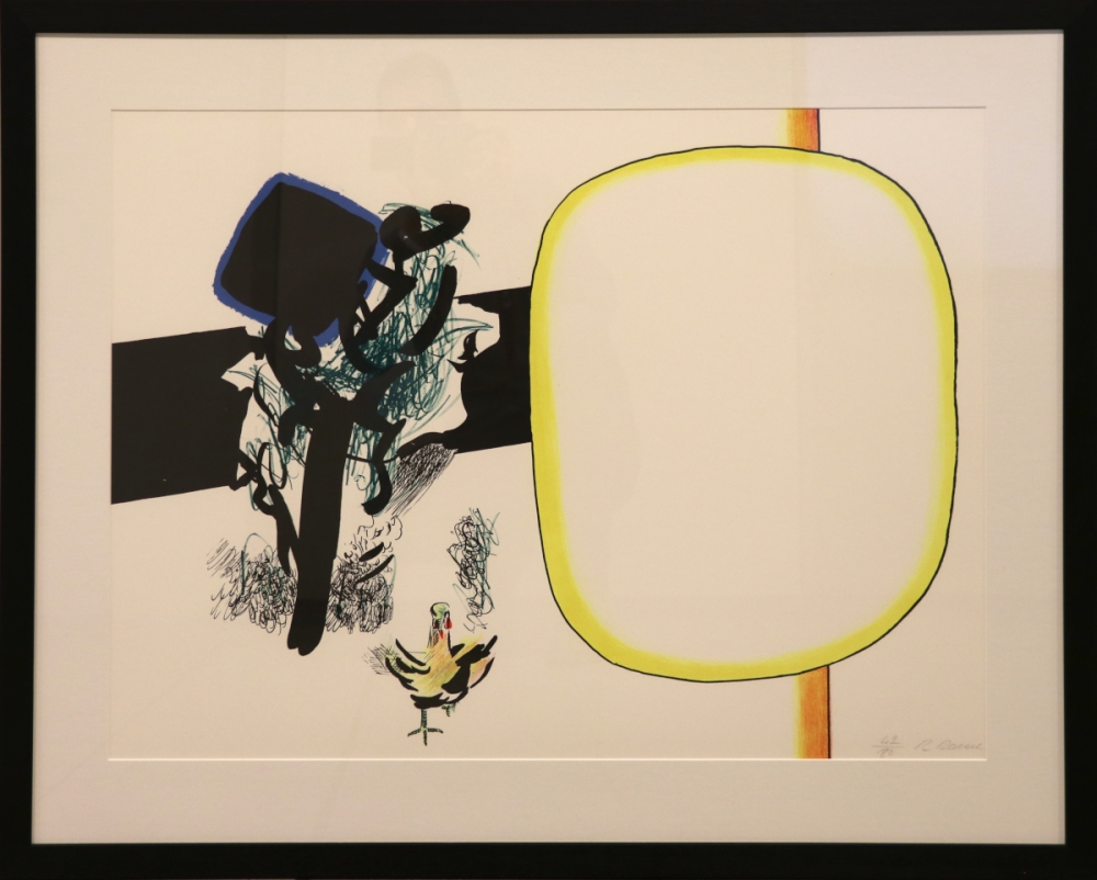 Lithografie van Roger Raveel. Met de hand gesigneerd en genummerd in een oplage van 80 exemplaren. Het werk is ingelijst in een zwarte lijst met uv-werend glas. Het werk en de lijst zijn in prima staat. Genesis is oorspronkelijk een gedichtenbundel van Hugo Claus. De bundel bestond uit 33 gedichten. In 1969 heeft Roger Raveel voor ieder gedicht een bijhorende lithografie gemaakt.