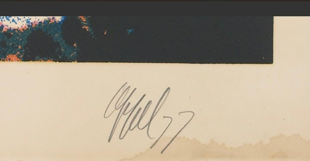 Large screen print, entitled Friday, from the Seven Summer Days series. The work is signed and dated by hand in the bottom right corner. In the lower left corner the work is numbered 94/100. Literature: Karel Appel, Henk van der Vet, Christian Dotremont, van Spijk publishing house, 1991. Good state. Some yellowing of the margin. Some moisture damage along the lower edge of the leaf. The image is undamaged.