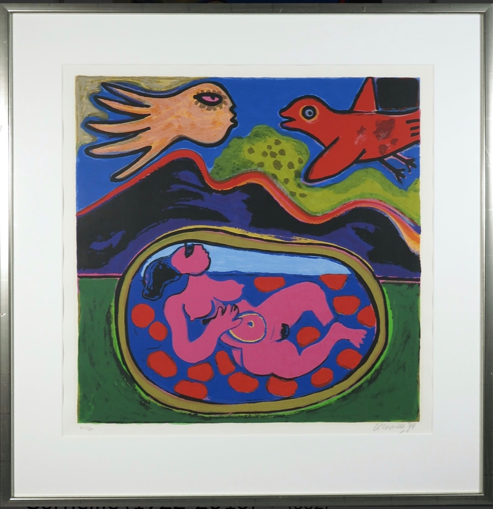 Prachtige zeefdruk van de Kunstenaar Corneille. Het werk is prachtig ingelijst en is ook in perfecte staat. de zeefdruk meet 66 x 66 cm en met lijst 88 x 86 cm. Met de hand gesigneerd en gedateerd. Op 30 ex.