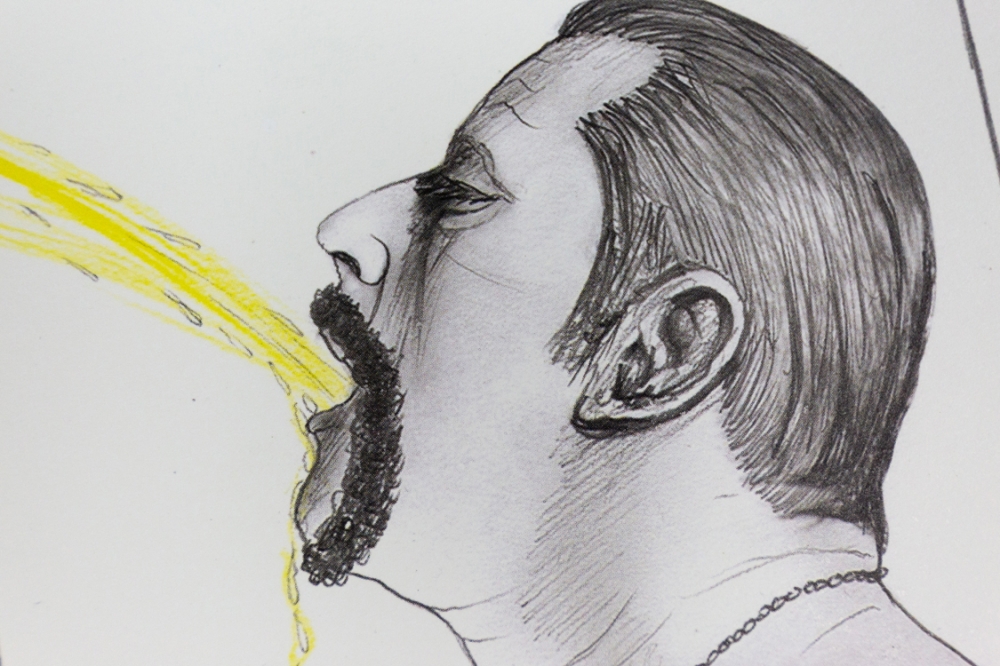 This work is an offset on hardened cardboard.