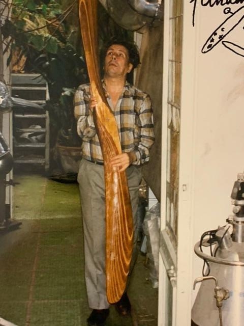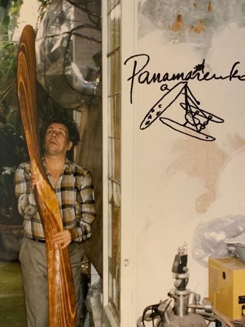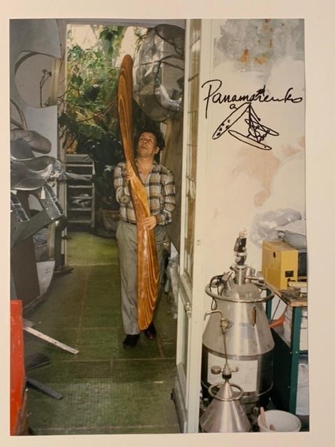 Typografische C-print(Chromogenic Color print) van Panamarenko gesigneerd met een stempel. Dit werk is een onderdeel van het werk/de verzameling "Flugbetrieb" uit 1997. Dit werk heeft als titel Propeller