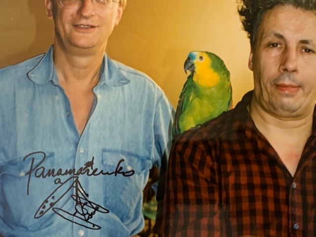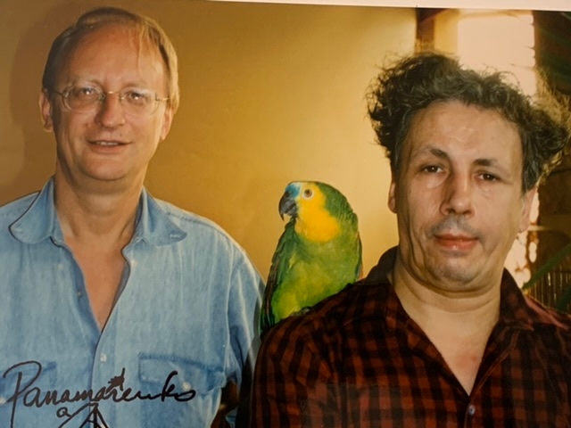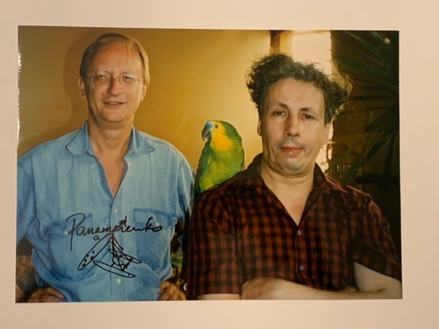 Typographic C-print (Chromogenic Color print) by Panamarenko signed with a stamp. This work is part of the work / collection "Flugbetrieb" from 1997. This work is entitled Helden - Klaus Staeck, Ara and Panamarenko