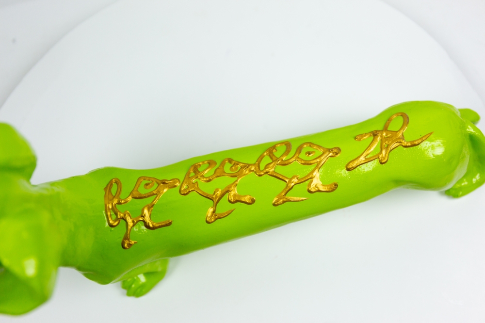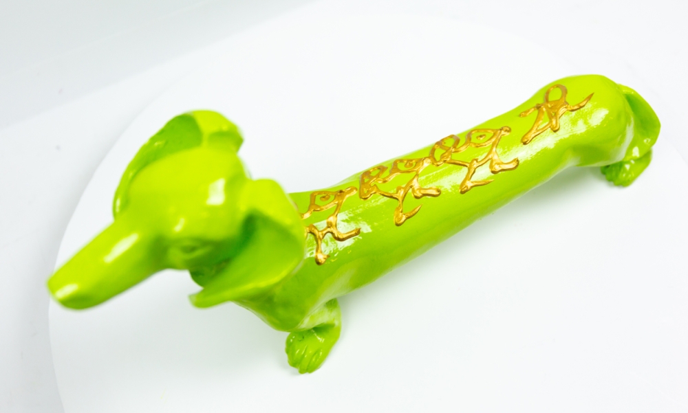 Sculptuur uit kunsthars van Hannes D'Haese, met originele beschildering in gouden acrylverf op de rug en gesigneerd met de letters DH. Wordt afgeleverd met certificaat van Hannesdhaeseshop.