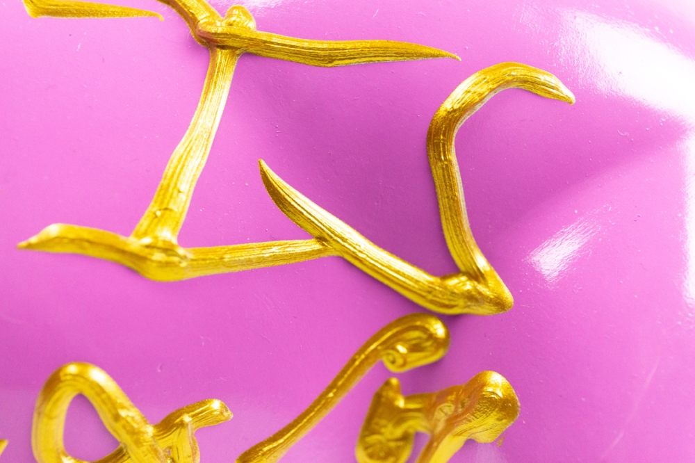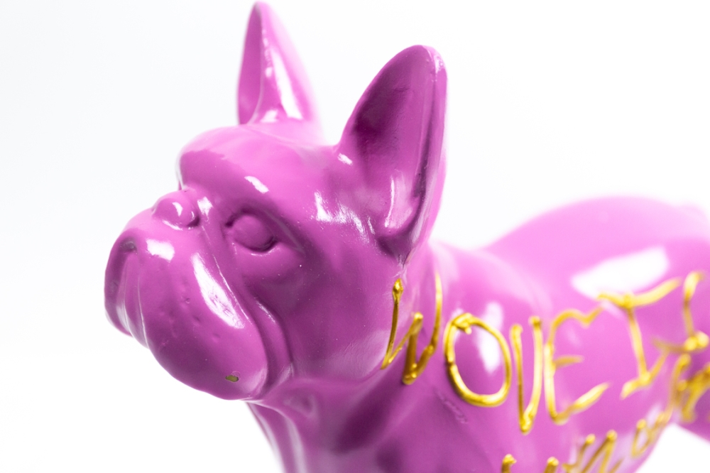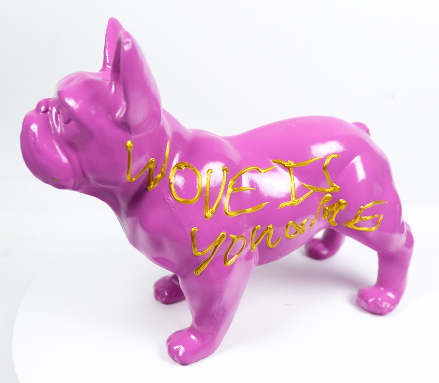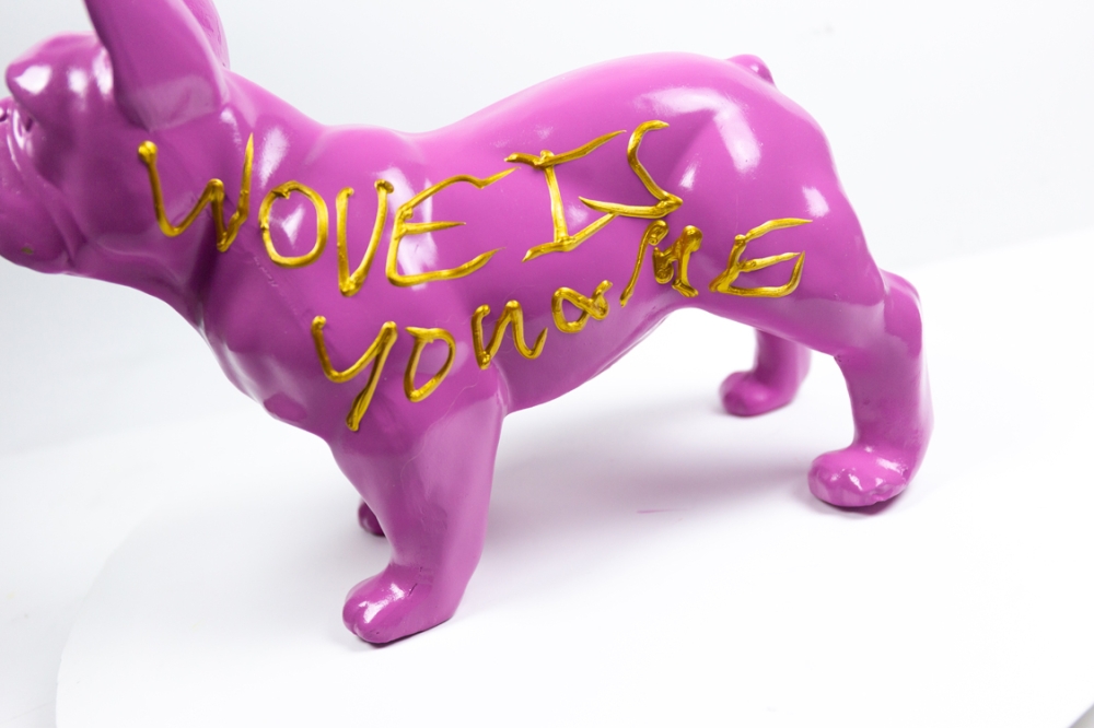Sculpture from synthetic resin by Hannes D'Haese, painted by hand and signed in golden acrylic paint. The inscription: "Love is you & me".