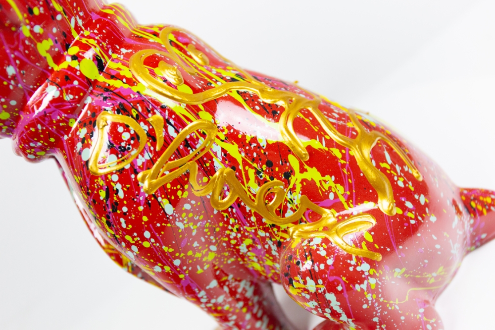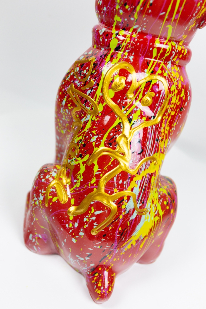 Sculpture from synthetic resin by Hannes D'Haese. Sculpture has original painting and signature in gold acrylic paint on the back.
