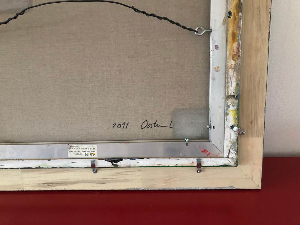 This painting is an oil painting size: 50 x 70 cm. It shows a landscape. The colors give the painting a mysterious atmosphere and depth. The classic looking frame makes it complete. You see what you see. More work by Lambert Oostrum can be found at www.lambertoostrum.nl