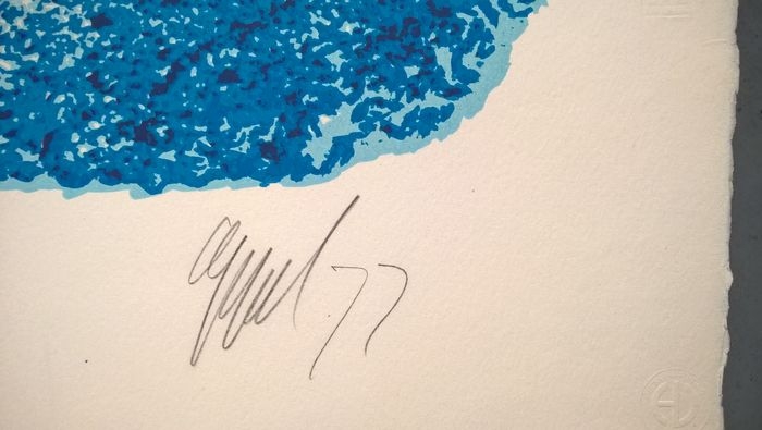 Een iconisch werk van Karel Appel uit de Seven Summer Days Serie uit 1977 Afmeting blad 85 x 70 cm, in zeer goede staat Het werk is een handgesigneerd HC exemplaar Het werk komt uit de nalatenschap van meester-zeefdrukker Henk van der Vet