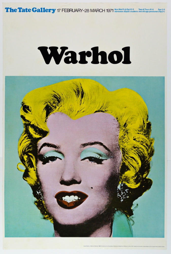 Rare original poster (from 1971) for the Andy Warhol exhibition in the Tate Gallery in 1971. The poster shows the work 'Marilyn Monroe', a worldwide known work from 1964.