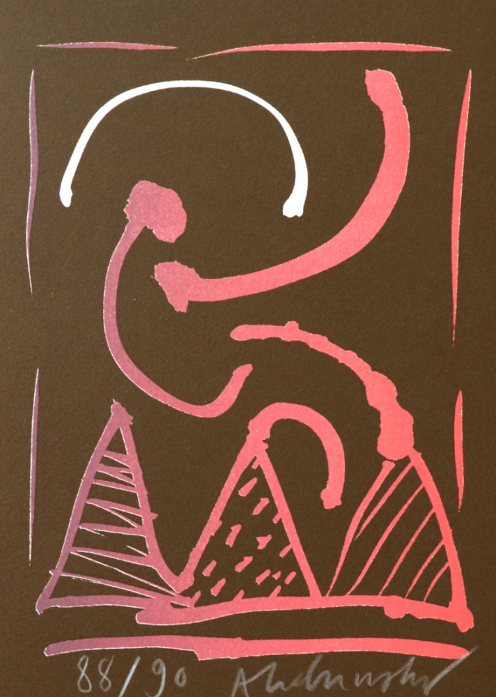 Kleurenlithografie van Pierre Alechinsky op BFK Rives papier. Gesigneerd en genummerd op 90 exemplaren. De signatuur en nummer werd aangebracht met krijt door Pierre Alechinsky. Dit werk werd gedrukt bij Atelier Clot te Parijs.