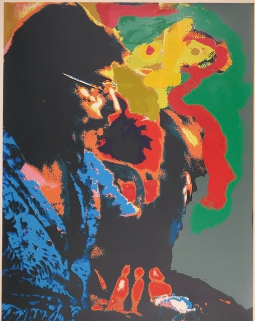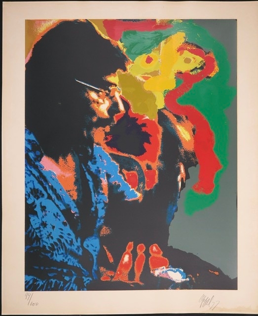 Large screen print, entitled Friday, from the Seven Summer Days series. The work is signed and dated by hand in the bottom right corner. In the lower left corner the work is numbered 94/100. Literature: Karel Appel, Henk van der Vet, Christian Dotremont, van Spijk publishing house, 1991. Good state. Some yellowing of the margin. Some moisture damage along the lower edge of the leaf. The image is undamaged.