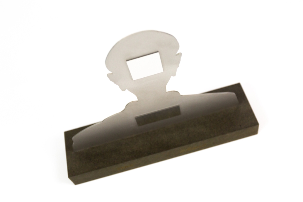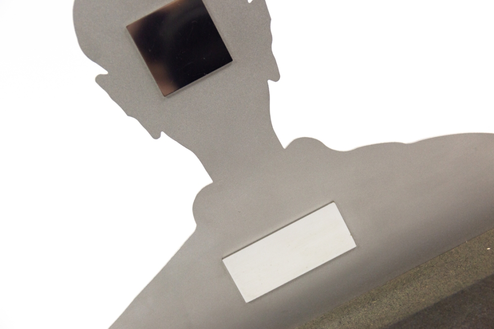 Sculpture made with metal and a mirrors. Signed and numbered in Roman numerals on 50 copies. A second version was released on 800 copies on the occasion of the 75th anniversary of ADMB, Bruges. Signature and numbering on the front of the plinth.