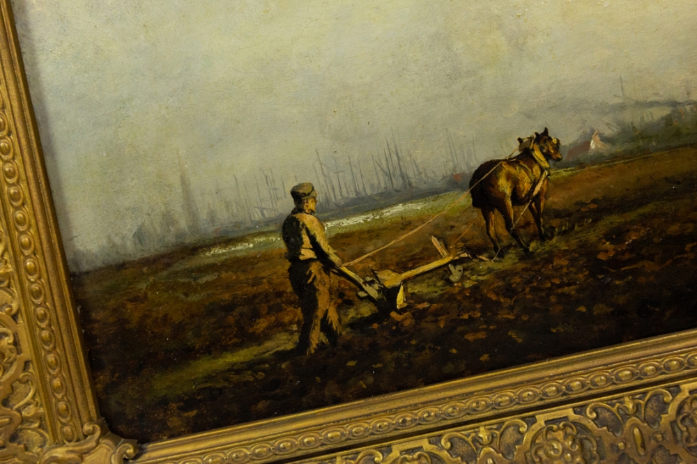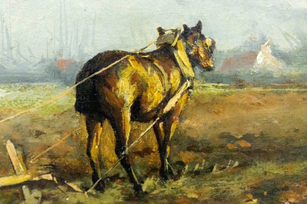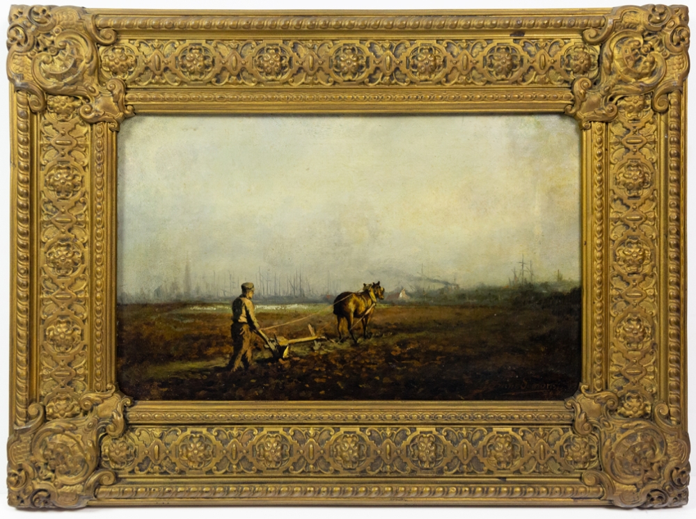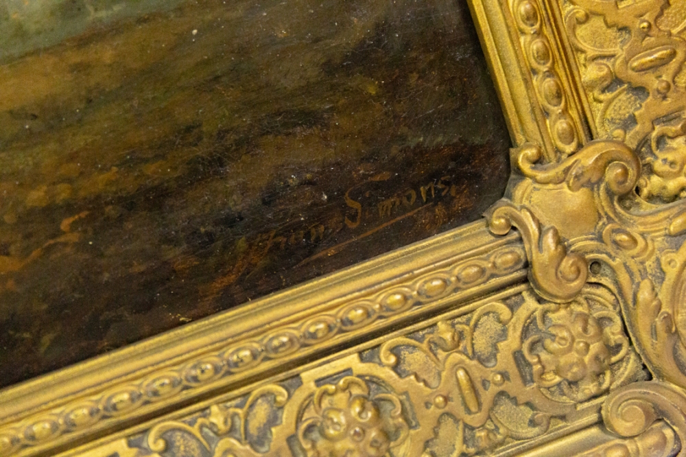 Olieverfschilderij op houten paneel van de hand van Jan Frans Simons.