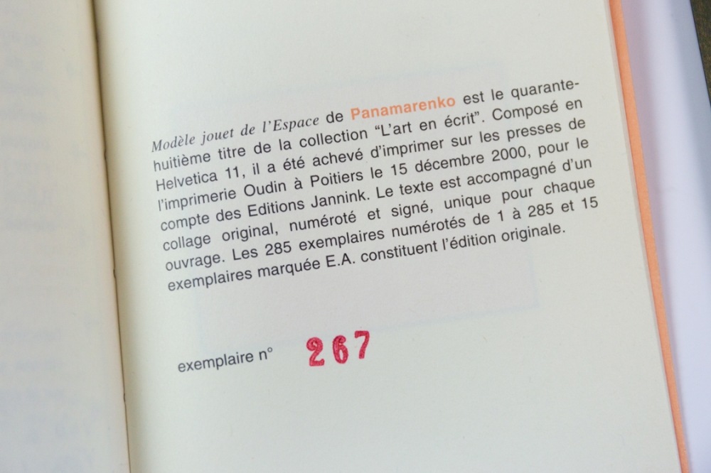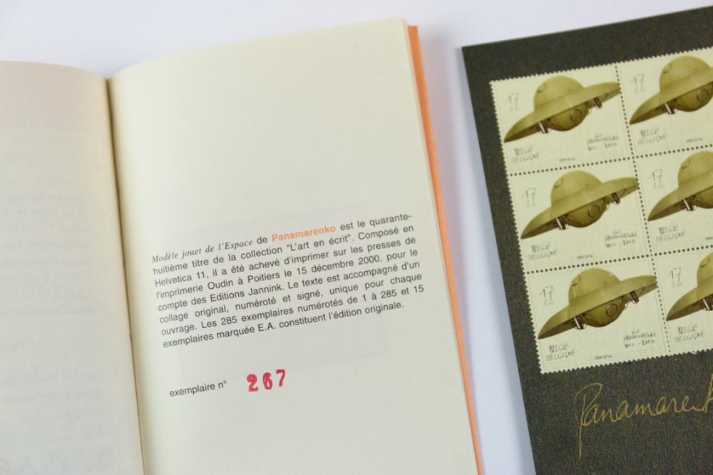Booklet with accompanying stamps issued by Editions Jannink - Paris in 2000. Numbered as 287 of 285 and signed by Panamarenko himself.