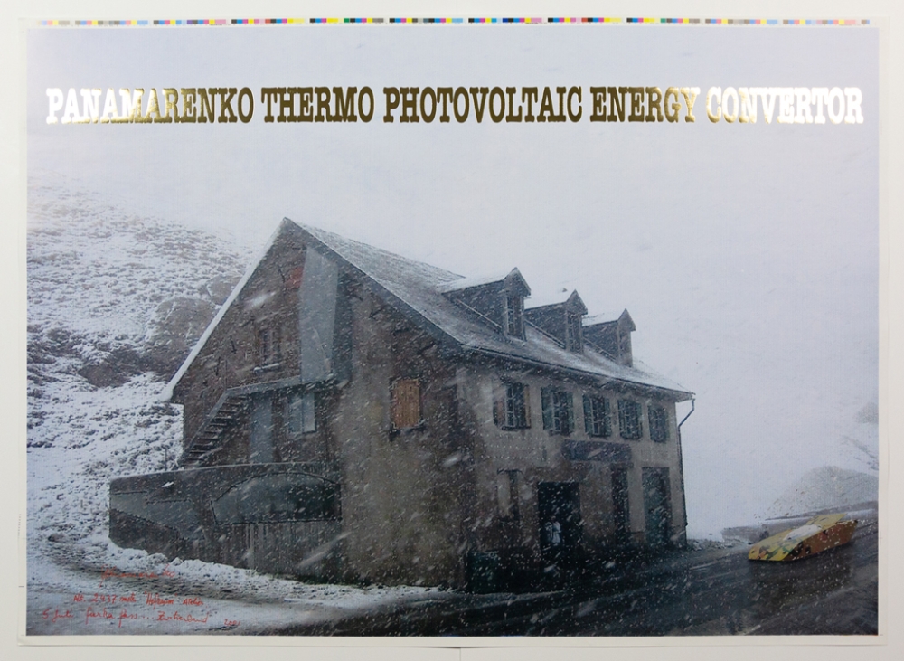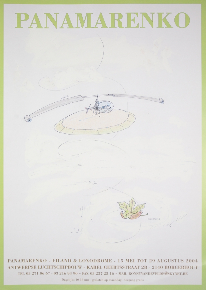 3 original, unsigned Panamarenko posters from the period 2000-2004, combined in 1 lot. The lot contains the posters "Thermo Photovoltaic Energy converter" (52 * 72cm), "Raven's variable matrix" (49 * 72cm) and "Eiland & Loxodrome" (60 * 43cm).