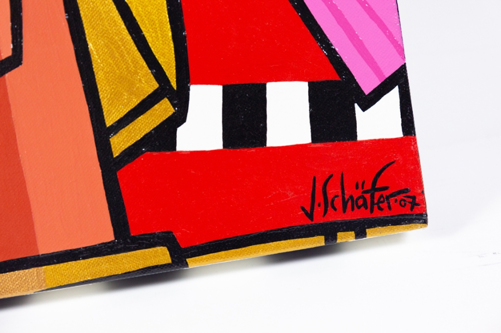 Portrait of the Dutch artist Jacqueline Schafer , with arcyl paint on canvas, in her own style. The work is in excellent condition and ready to hang.