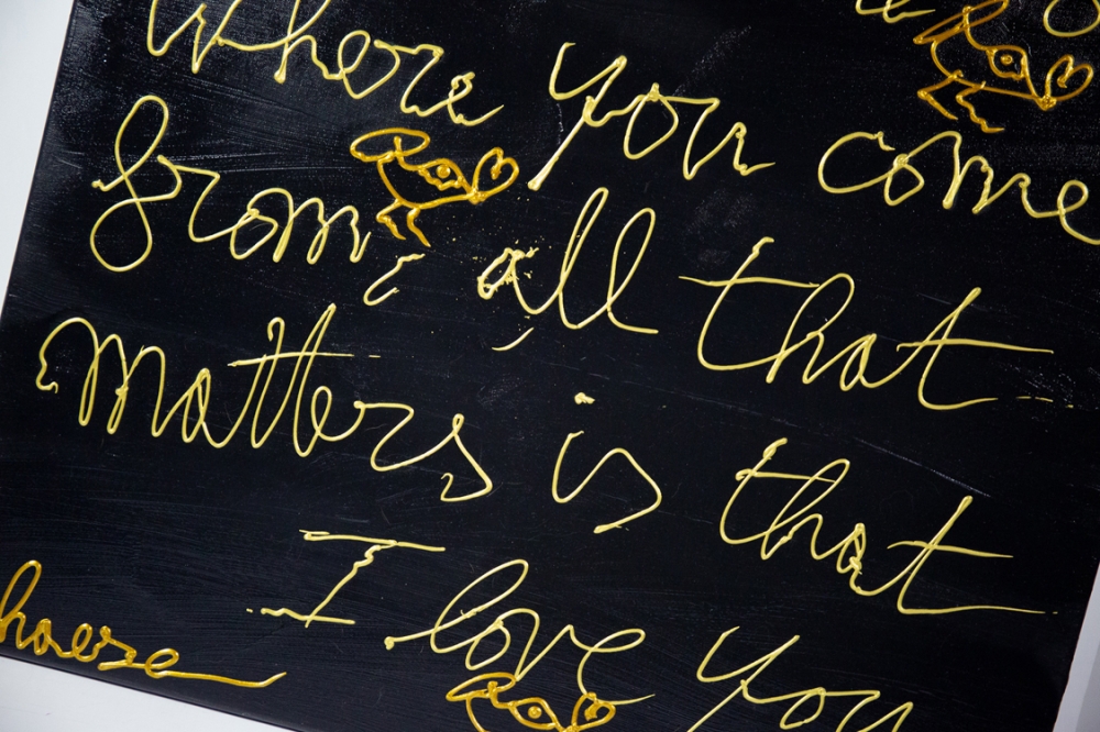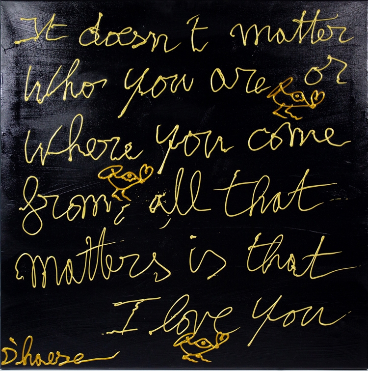 Acrylic painting of Hannes D'Haese on canvas. The work is entitled "It doesn't matter who you are or where you come from, all that matters is that I love you".