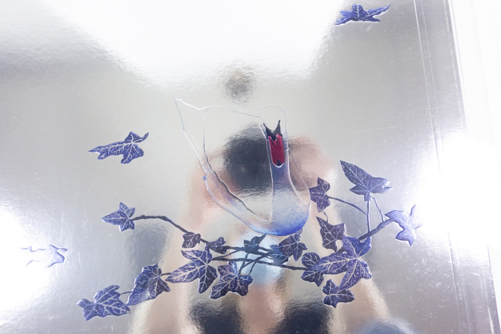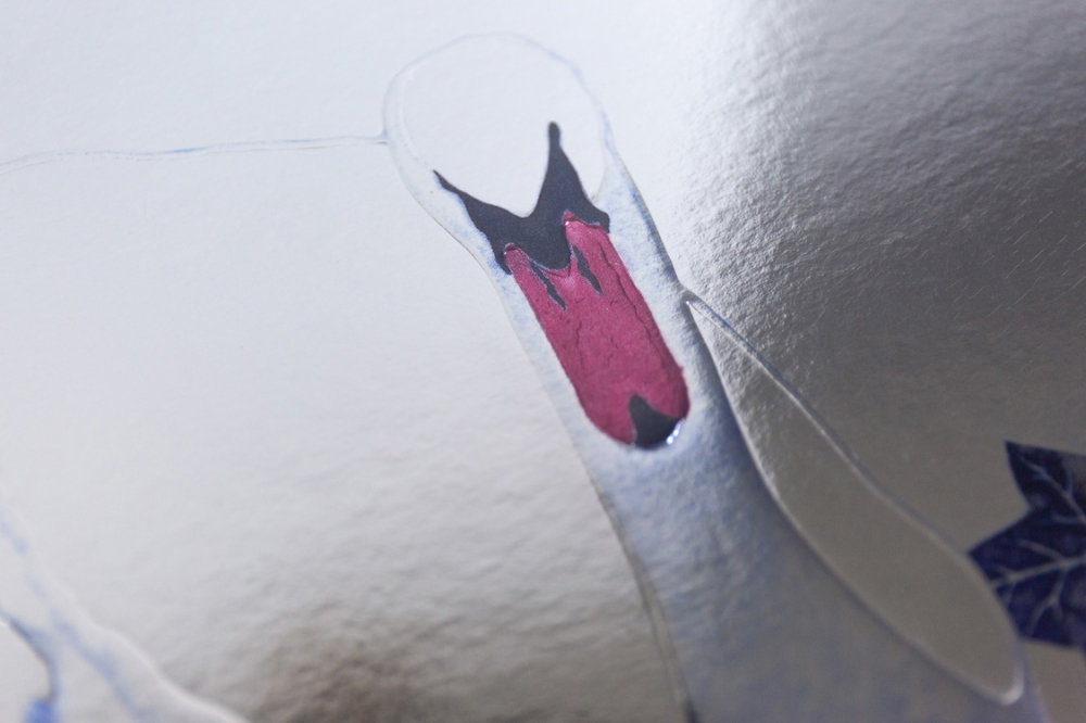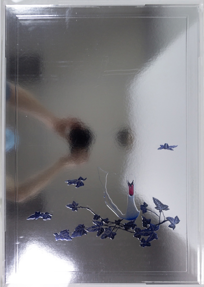 Lithograph by Jan Fabre from the Tivoli series, which consists of 7 lithographs. The work is applied on silver-coloured and reflective cardboard paper and is framed in a plexibox.