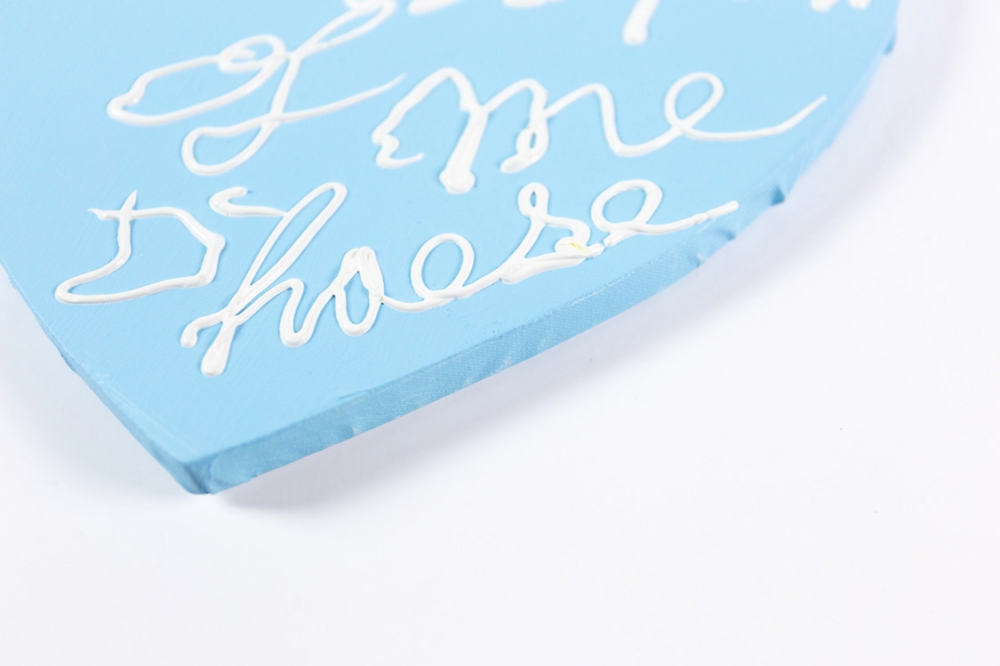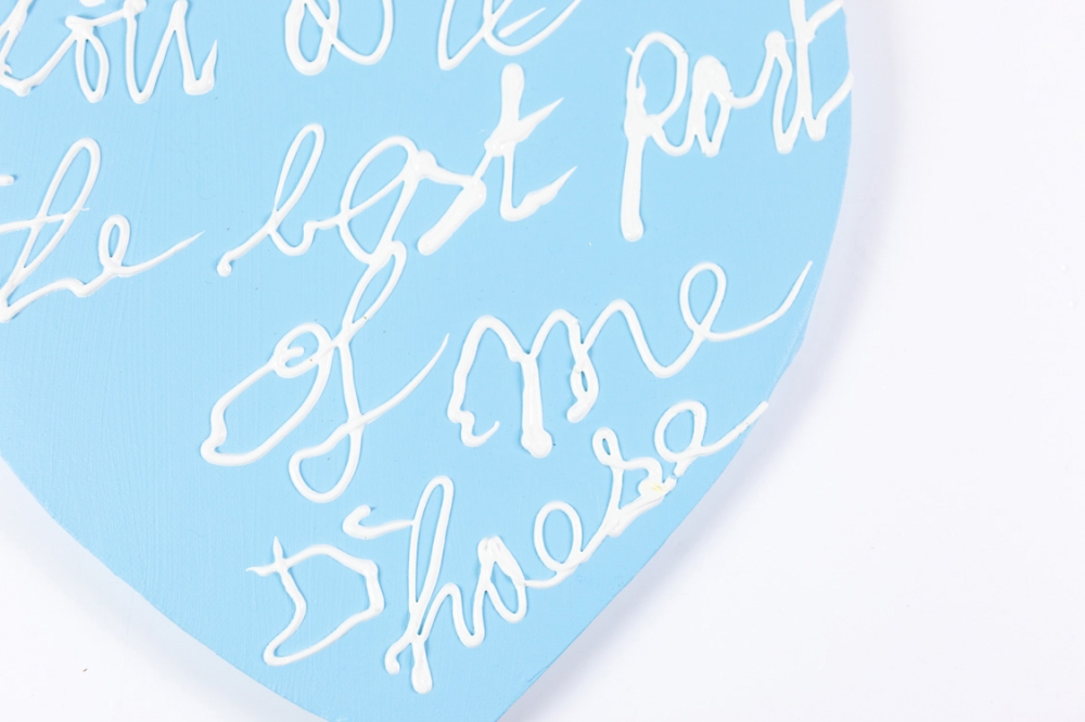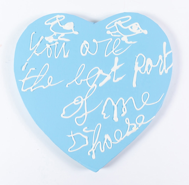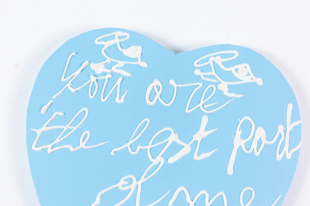 Acrylic painting by Hannes D'Haese on canvas, in the shape of a heart stretched, with the inscription: "You are the best part of me".