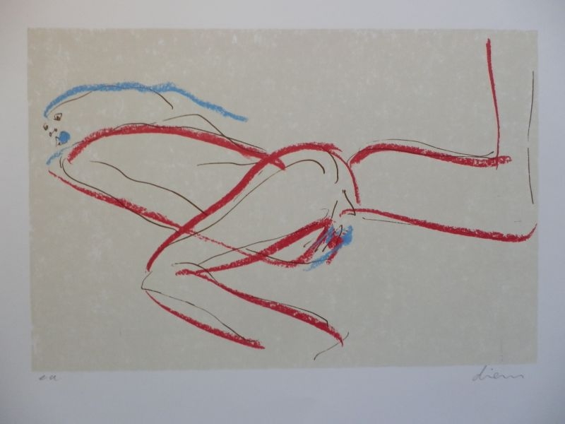 Zeer bijzondere en erotische kleurenzeefdruk van de bekende Nederlandse kunstenaar Peter Diem. Afmeting blad 50 x 70 cm in nieuwstaat. Het werk is een handgesigneerd EA exemplaar. Het werk is nooit ingelijst geweest.