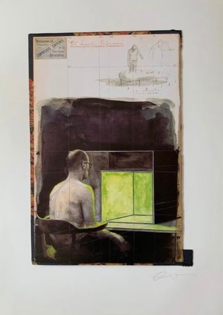 The work entitled The soporific performance is a collage and print on cardboard.