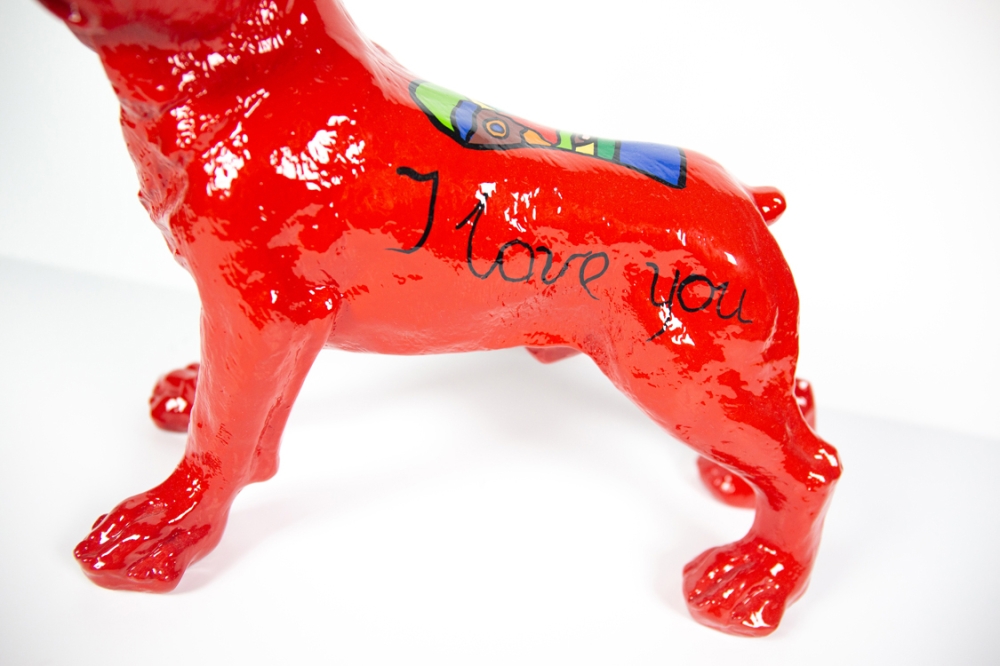 Resin sculpture by Hannes D'Haese with the inscription "I love you".