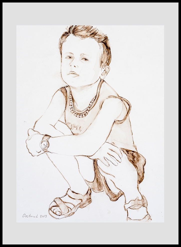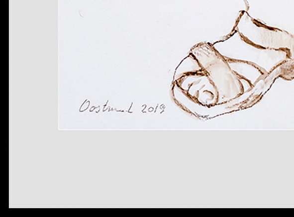 Frank is een gewassen tekening op papier. Het is gemaakt met water oplosbare verf. Eerst getekend en daarna met water en penseel. Werk is ingelijst achter glas met een zwarte rand. afmeting lijst is: 75 x 55 cm Lambert Oostrum is nog steeds actief als beeldend kunstenaar. In het begin van zijn loopbaan heeft hij in 1987 de Alfons Blomme prijs gewonnen. Recent werkt Lambert meer abstract met af en toe wat figuratie. In 2018 is hij genomineerd voor de Herman Krikhaarprijs in Almelo . Het schilderij van de nominatie heet: Fresh Product Het een en ander is te lezen op zijn website: www.lambertoostrum.nl