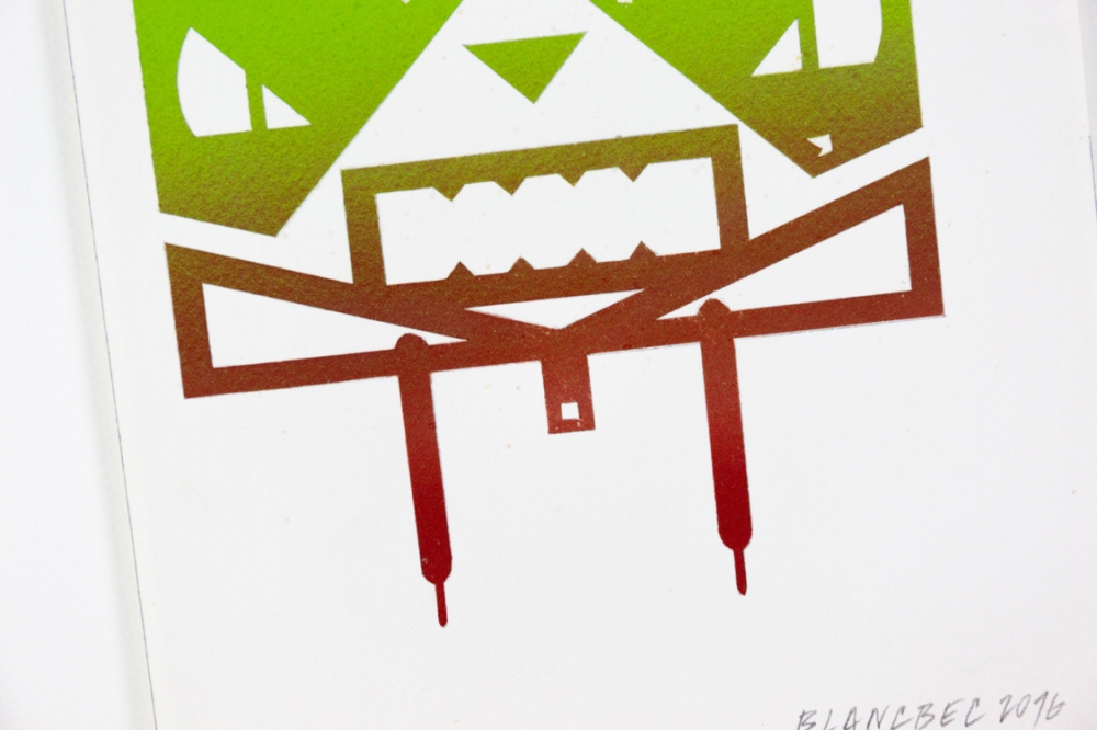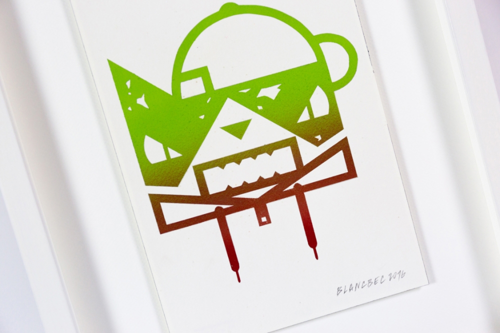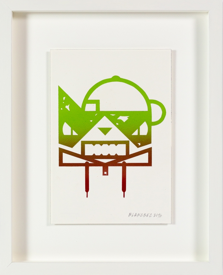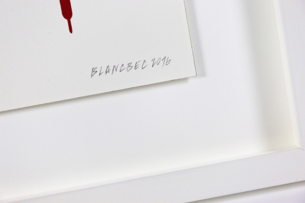 Original painting signed on paper and dated in pencil by Blanbec. This work is part of the exhibition 'Trafik' from 2016. Floating Framed in a white frame with anti-reflective museum glass.