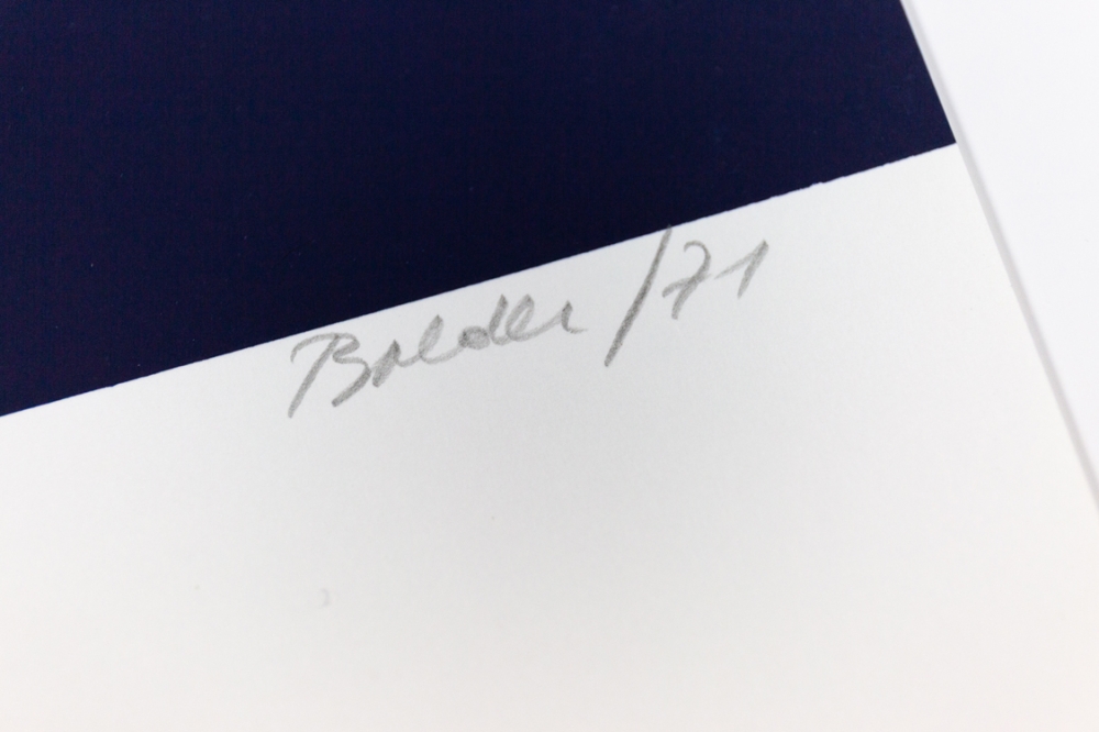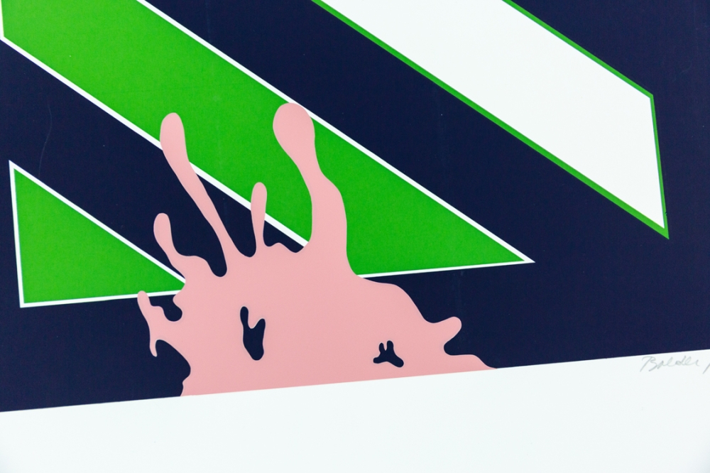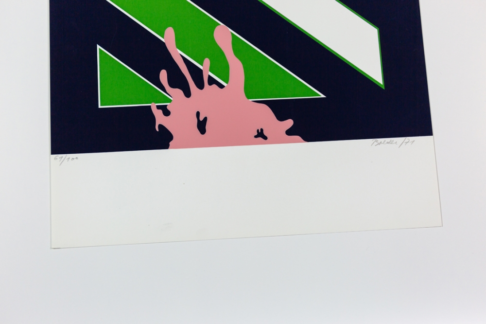 Zeefdruk van Balder (synoniem voor Boudewijn van Hoecke) uit de verzamelmap '2de Triënnale' uitgegeven door het Provinciebestuur West-Vlaanderen, Dienst Cultuur.