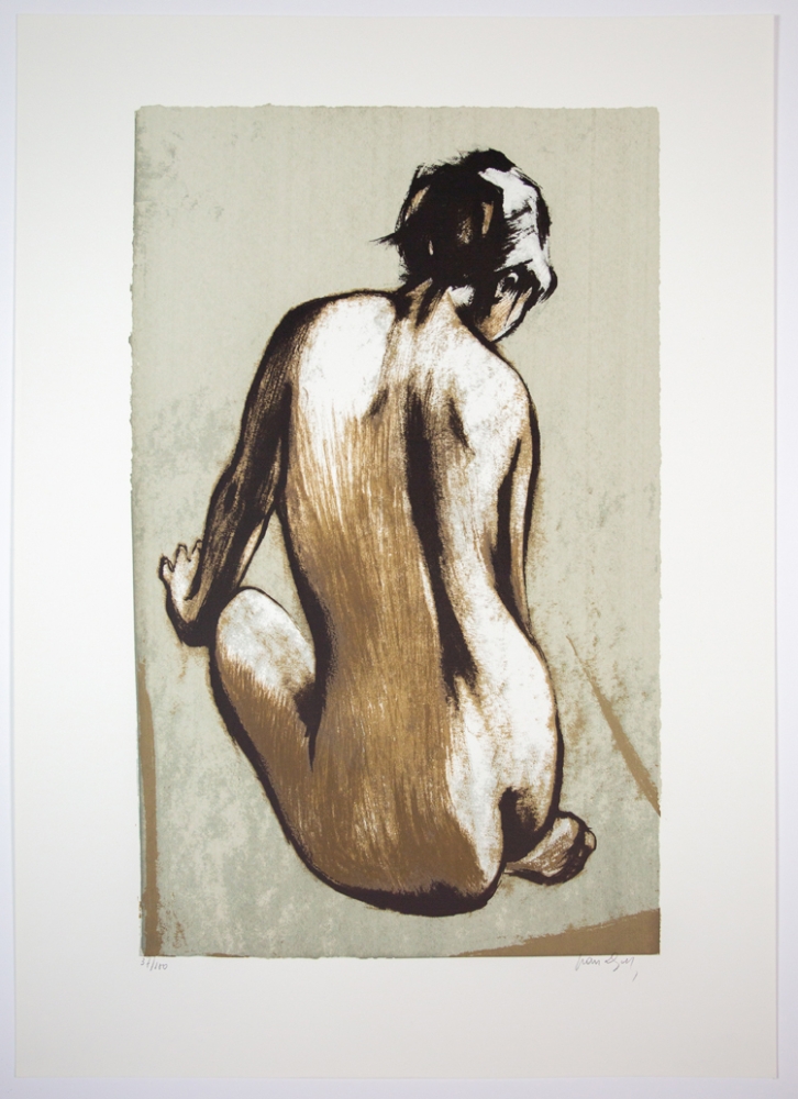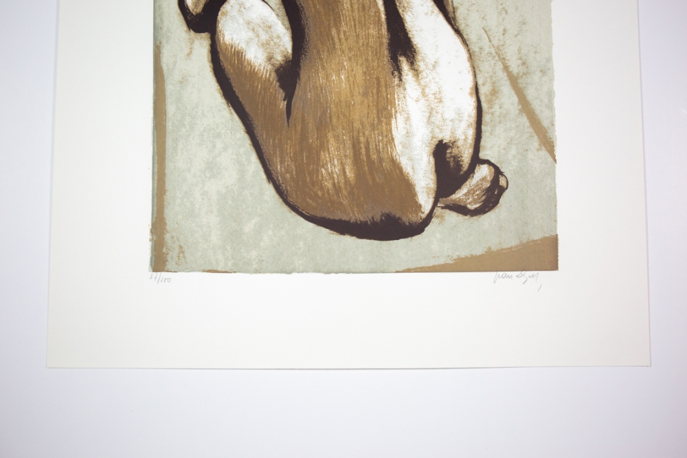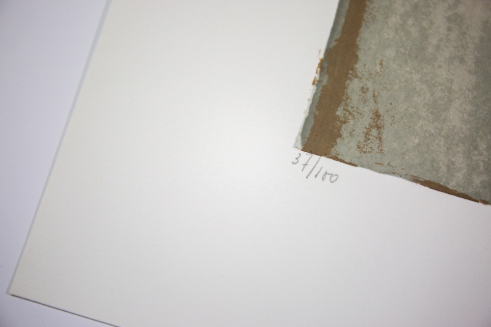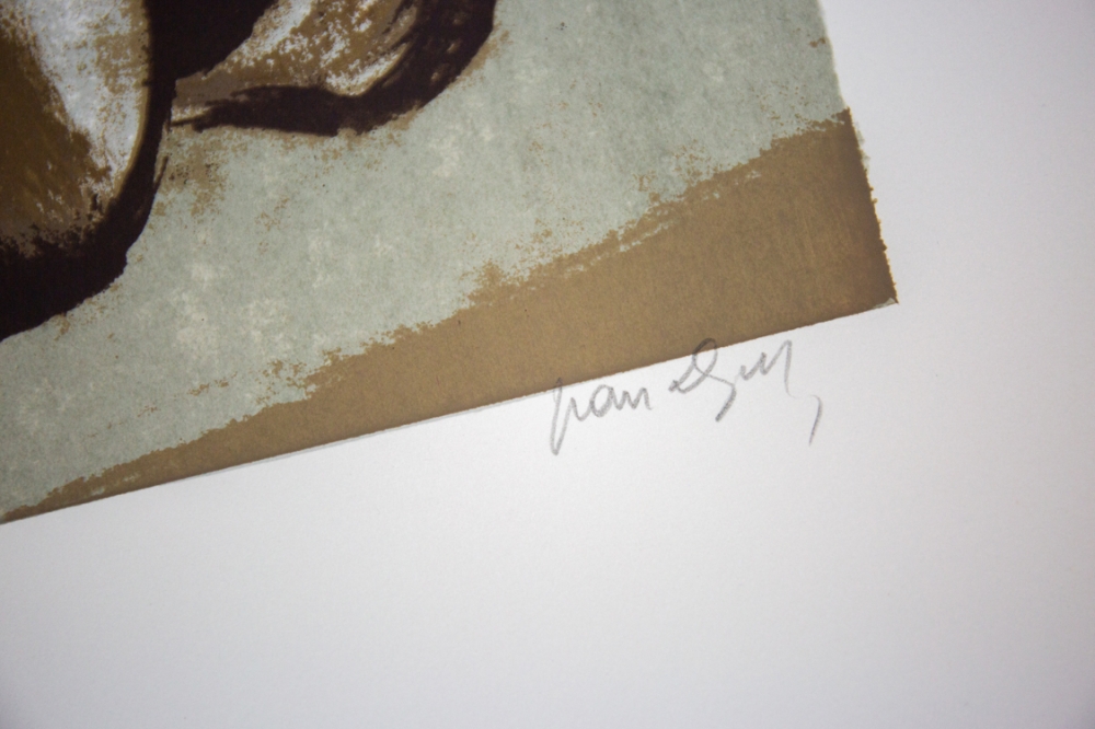 Zeefdruk van Freddy Van Dyck, uitgegeven naar aanleiding van 10 jaar Masereelfonds. Gelimiteerd op 100 exmeplaren, waarvan dit nummer 37 is.