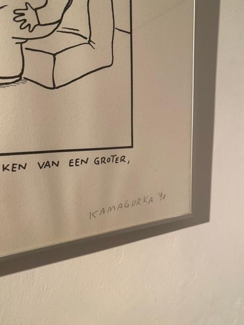 Very nice and absurd screen print by the Belgian artist Kamagurka. The work is neatly framed in an aluminum frame.