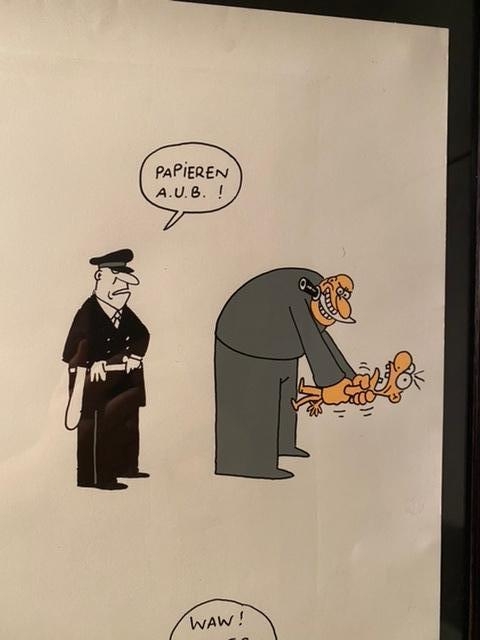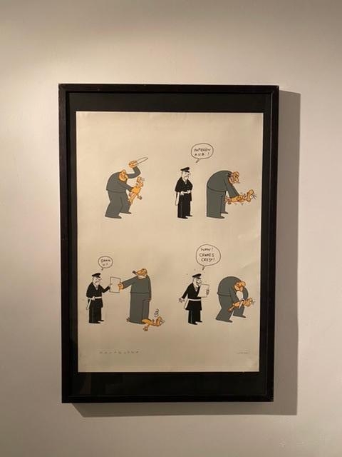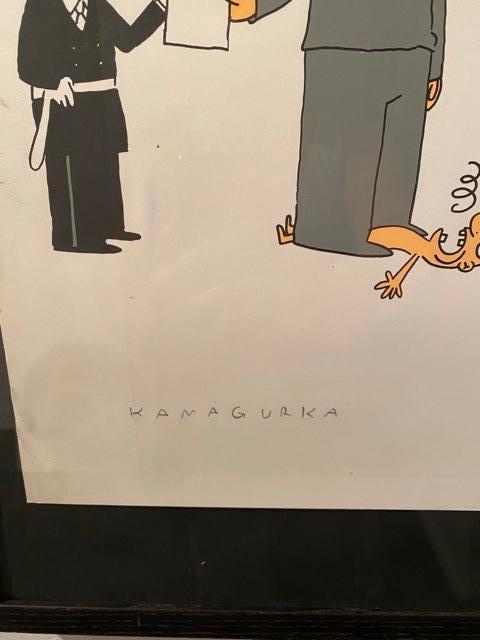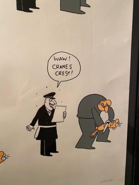 Nice screen print by the artist Kamagurka. The work depicts a cartoon called Cranes Crest. The silkscreen is signed by hand in the lower left corner and dated and numbered on 200 copies in the lower right.