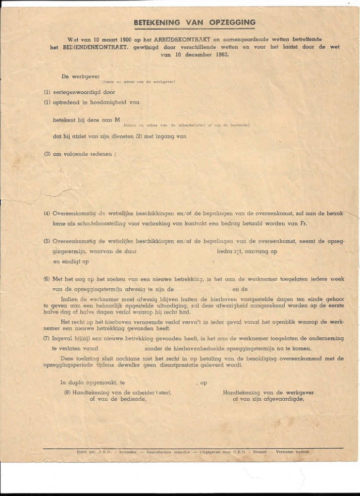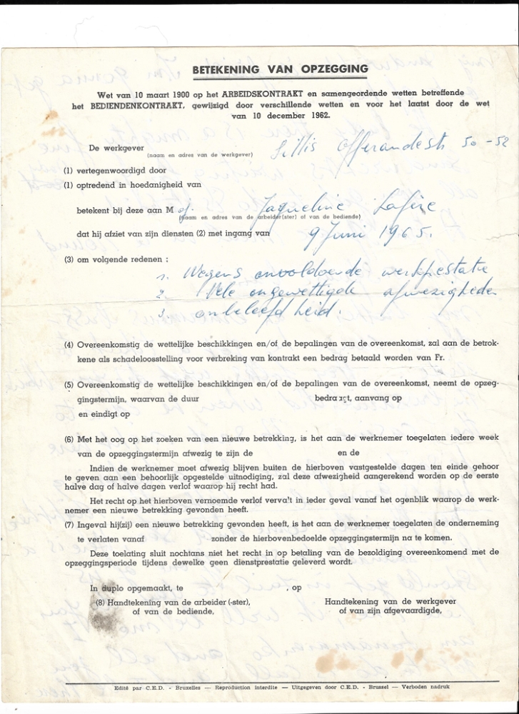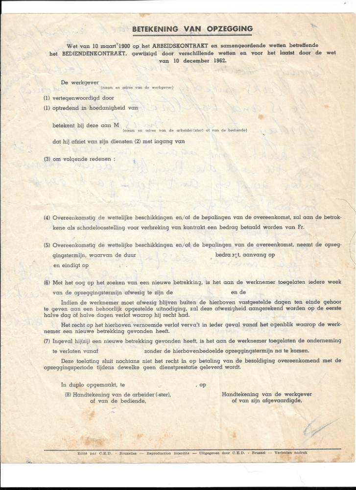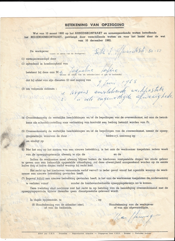 5 letters handwritten by Panamarenko, which come from the collection of Ronny Van De Velde, have been exhibited (see catalogue). Panamarenko wrote the letters in 1965 on the train on the way to happening Ostend. The letters were written on the back of a letter of resignation from one of his mother's shoe store employees.