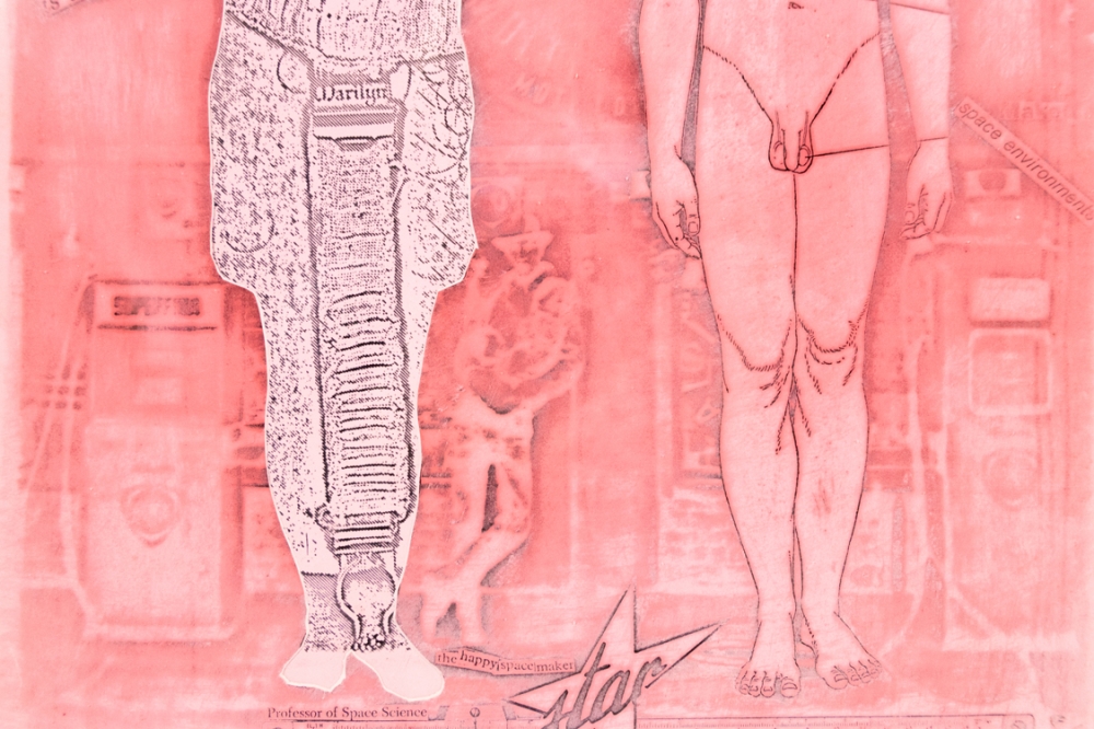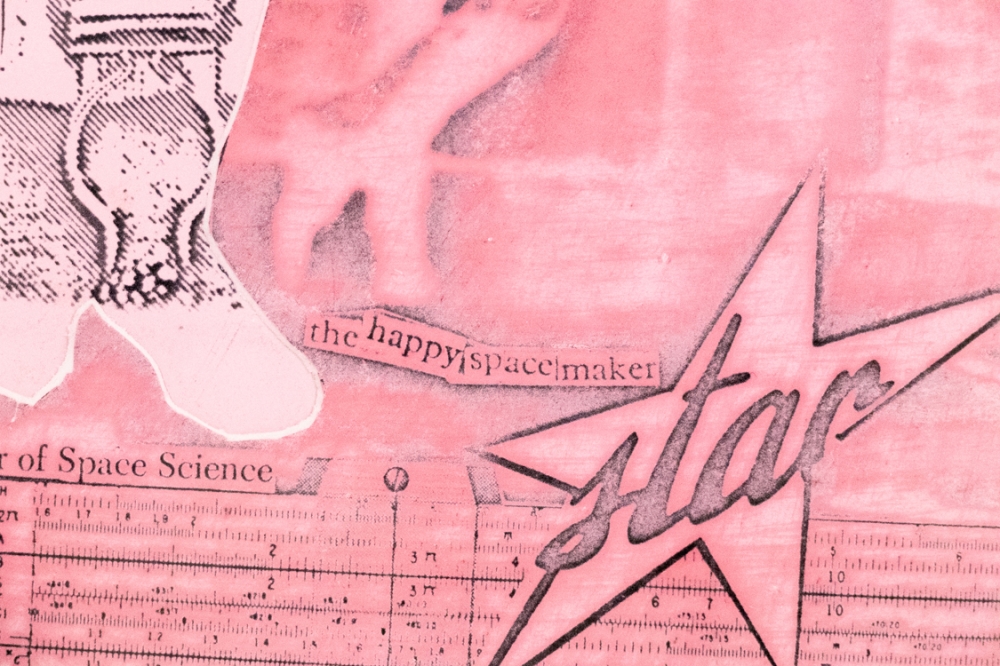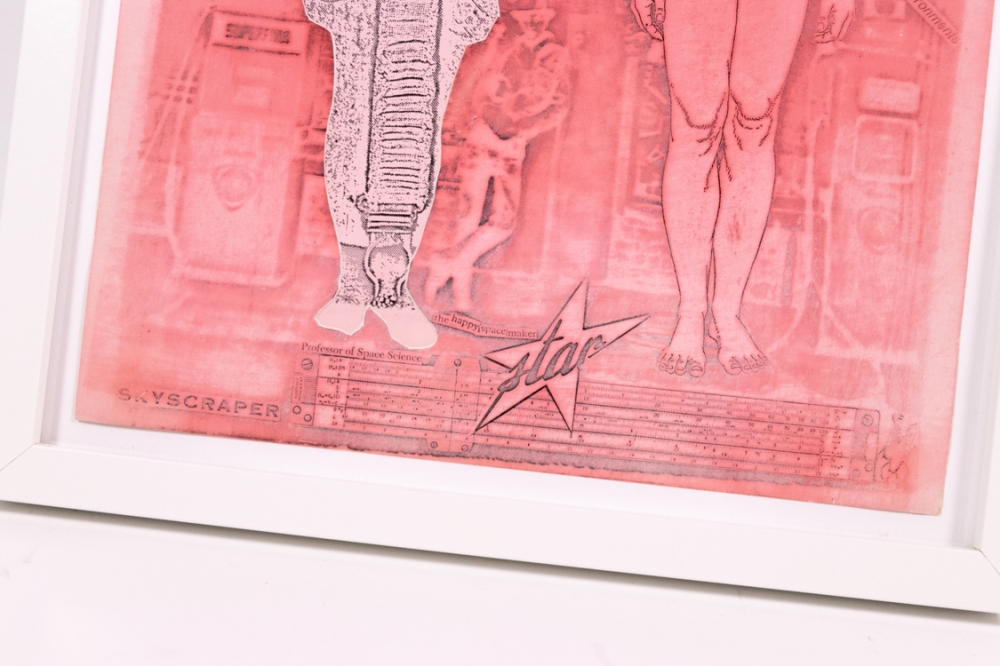 Print uit de Milkyways and Happenings periode, vroeg in het begin van Panamarenko's carrière. Dit was toen een samenwerking tussen Hugo Heyrman, Panamarenko, Wout Vercammene en Marcel Broodthaers. Ingelijst in sober kader met plexiglas.