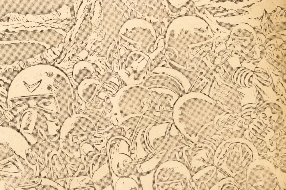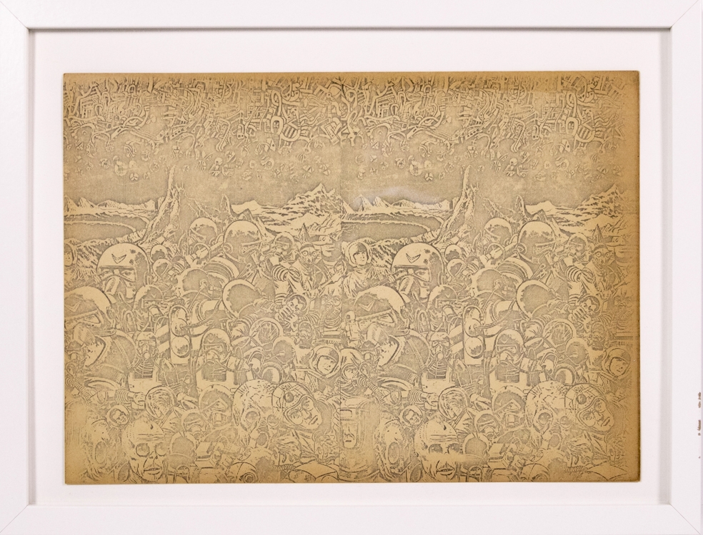 Print uit de Milkyways and Happenings periode, vroeg in het begin van Panamarenko's carrière. Ingelijst in sober kader met plexiglas.