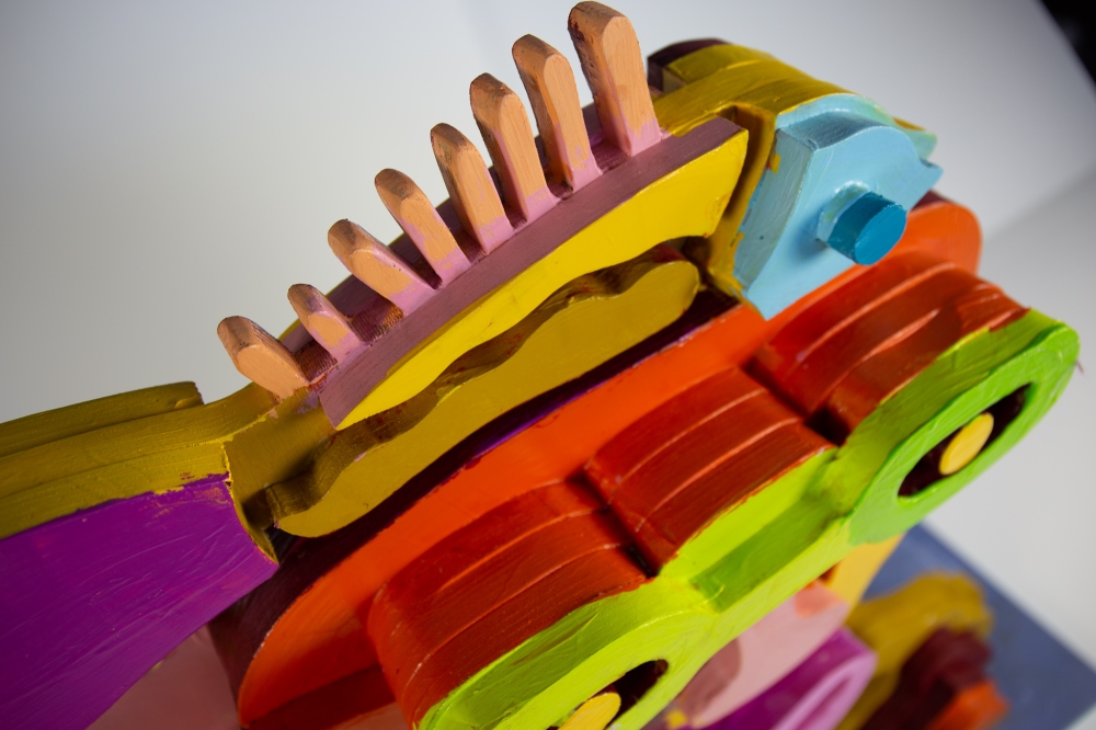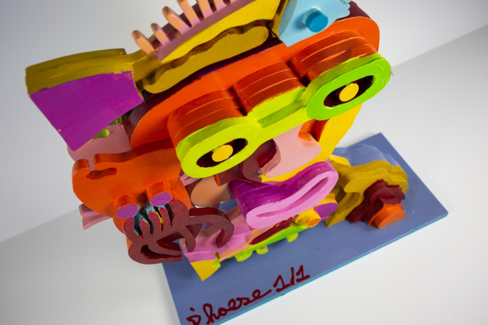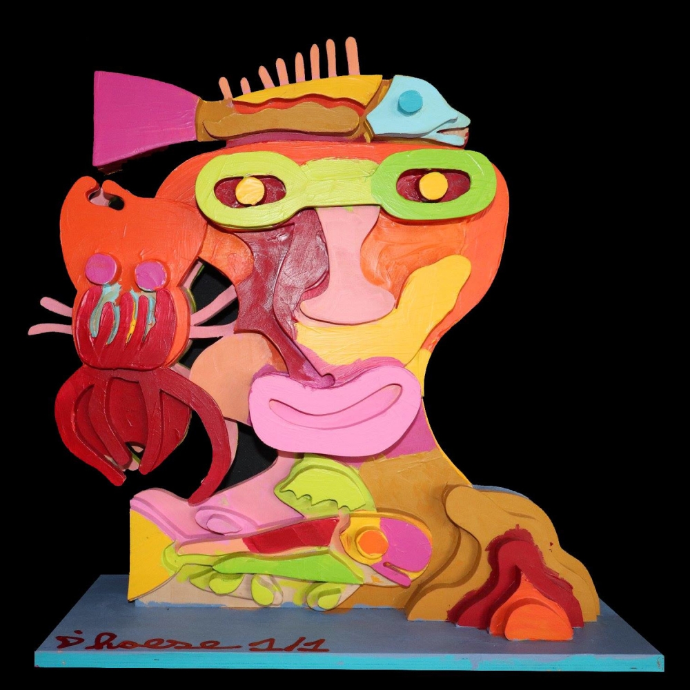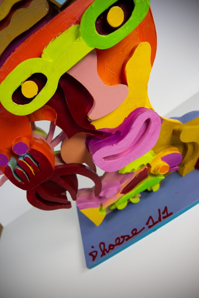 Originele houten sculptuur van Hannes D'Haese. De sculptuur werd uitgezaagd in meerdere lagen en nadien met de hand beschilderd. Het werd is een uniek kunstwerk waar er slechts één exemplaar van bestaat. Wordt geleverd met een echtheidscertificaat uitgegeven door de Hannes D'Haese Shop.