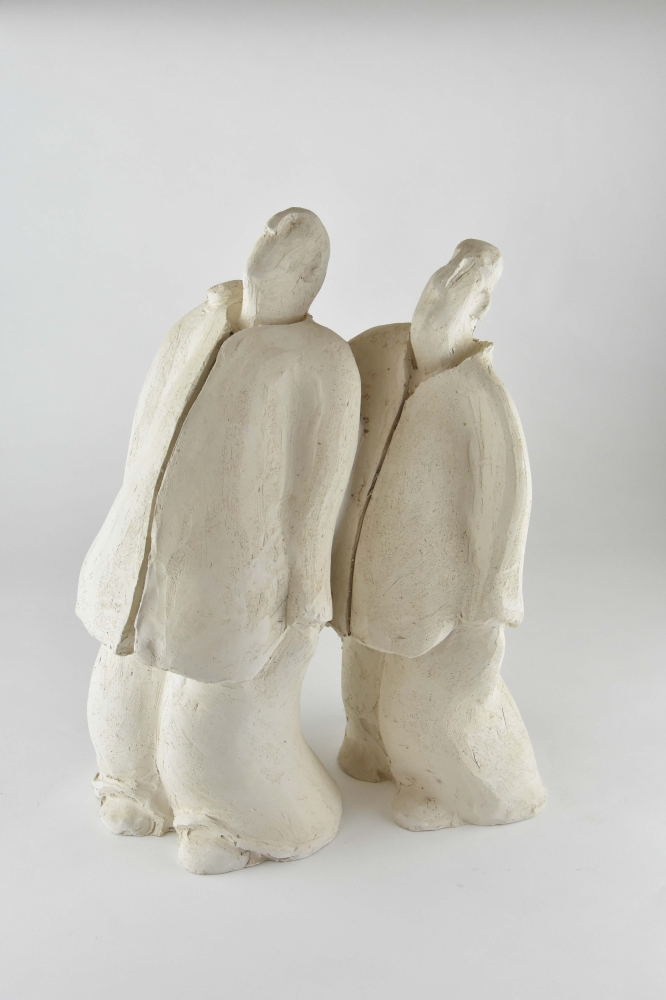 Twee personen die naar de hemel staren. Een schouderklopje ... Zoveel vragen ...
