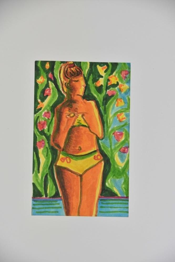 schoonheid pronken aan de rand van een zwembad. Getekend in Ostuni (Puglia - Italië). Helena is oud-leerlinge van de BK-afdeling.