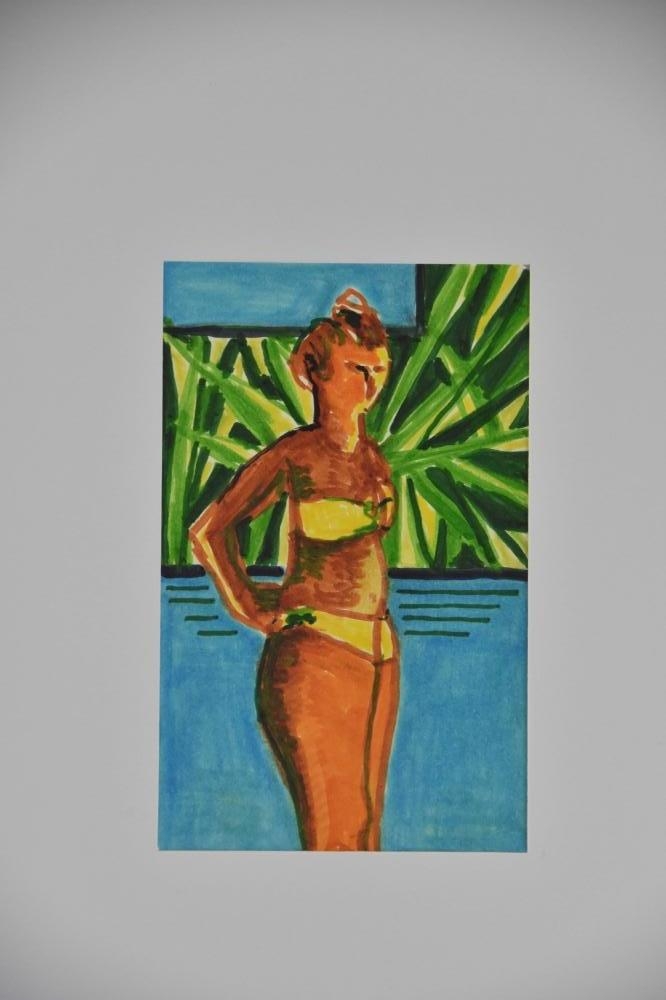 schoonheid pronken aan de rand van een zwembad. Getekend in Ostuni (Puglia - Italië).