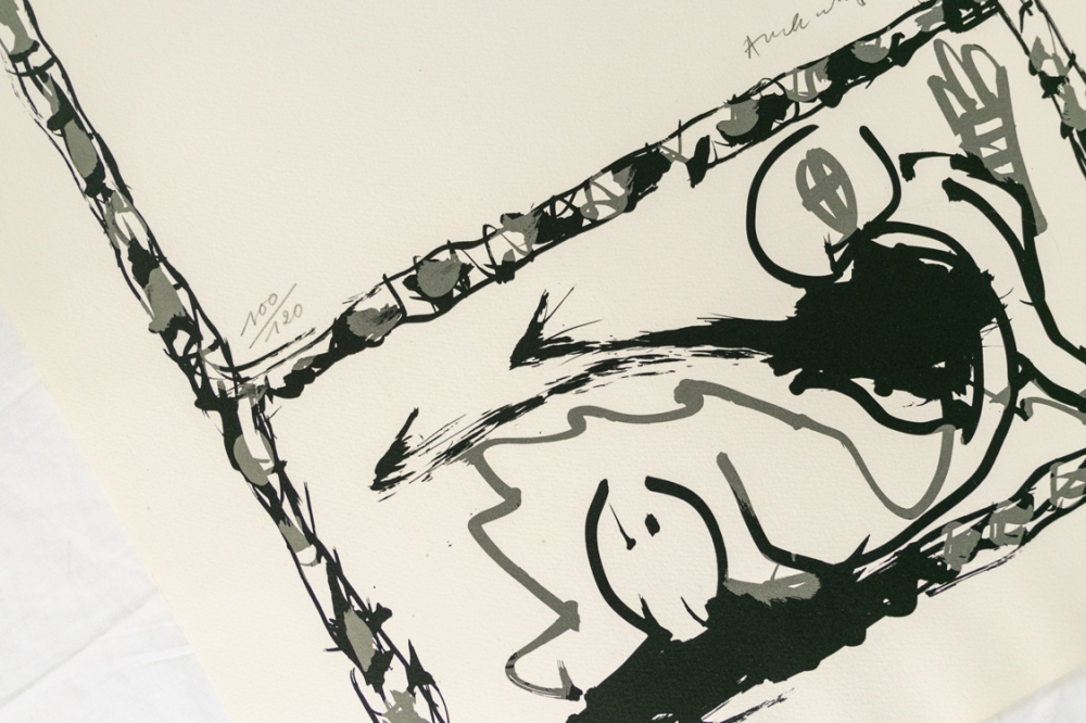 Kleurenlithografie en ets van Pierre Alechinsky. Getekend en genummerd op 120 exemplaren.