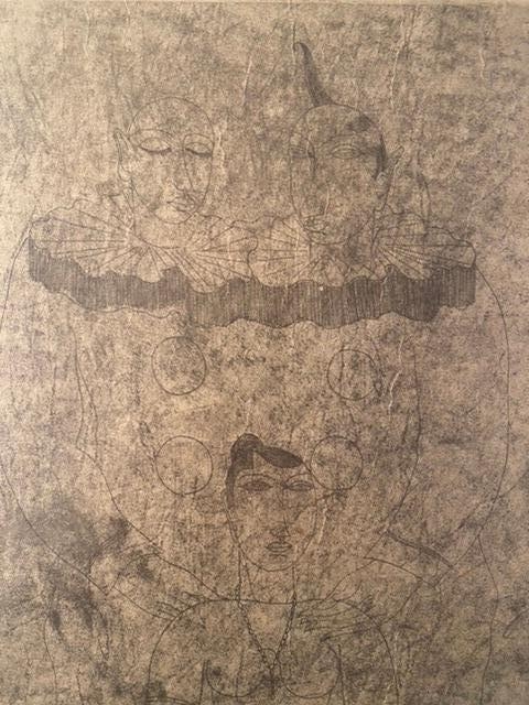 Typisch kenmerkende ers van de Belgische kunstenaar Floris Jespers. De ets stelt 2 harlekijnen voor. Het werk is in goed staat aangezien het toch al enige leeftijd heeft. De ets is met by main gesigneerd.