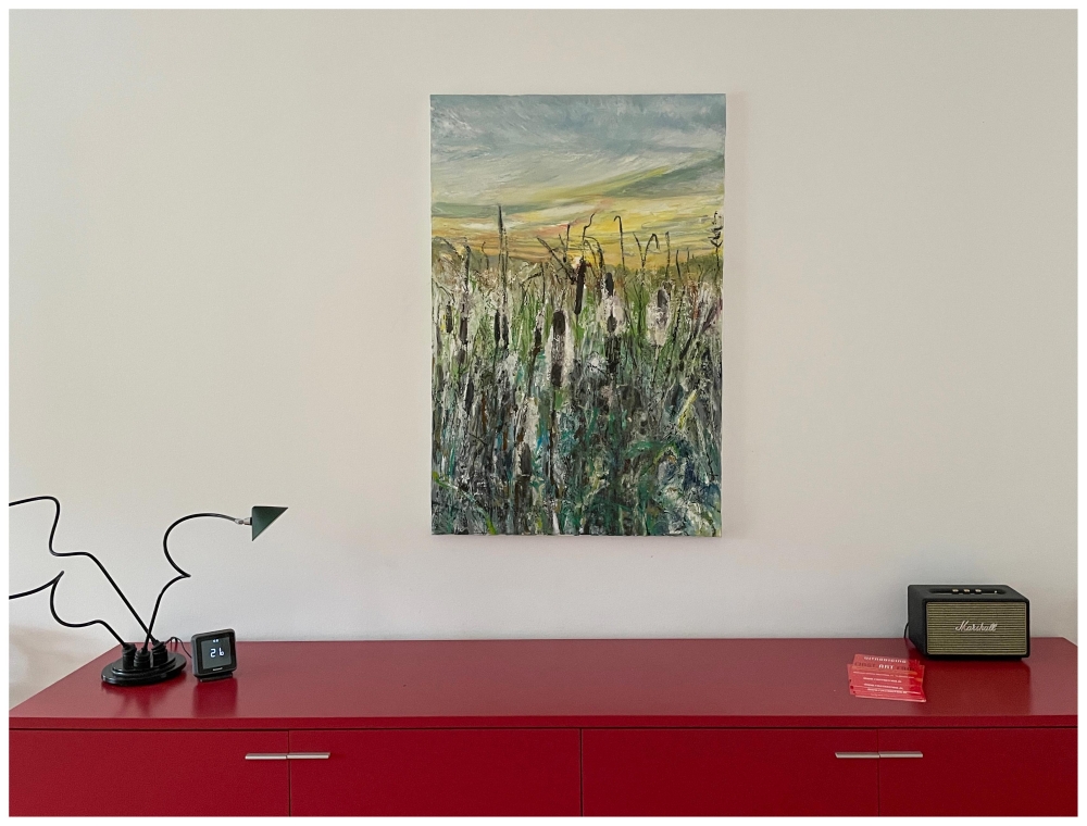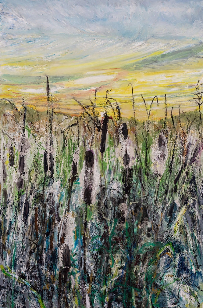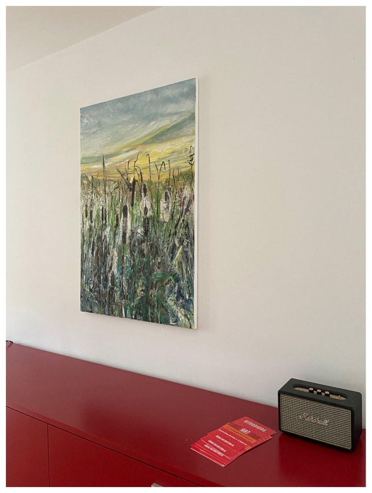 Oil painting 120 x 80 cm. Painting based on a photo early in the morning when walking the dog. Beautiful sunrise with beautiful colors as you rarely see. The linen cloth is stretched on an aluminum frame. It is a pasty painted painting. More work by Lambert can be found at www.lambertoostrum.nl