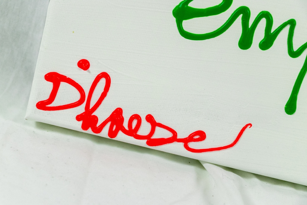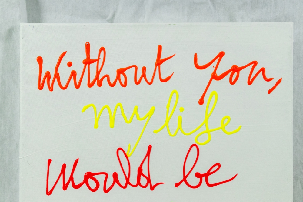 Acrylic painting by Hannes D'haese with the inscription: "Without you my life would be empty".