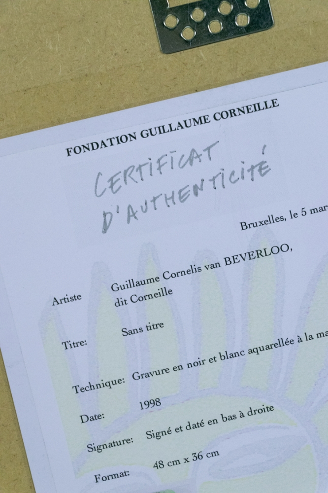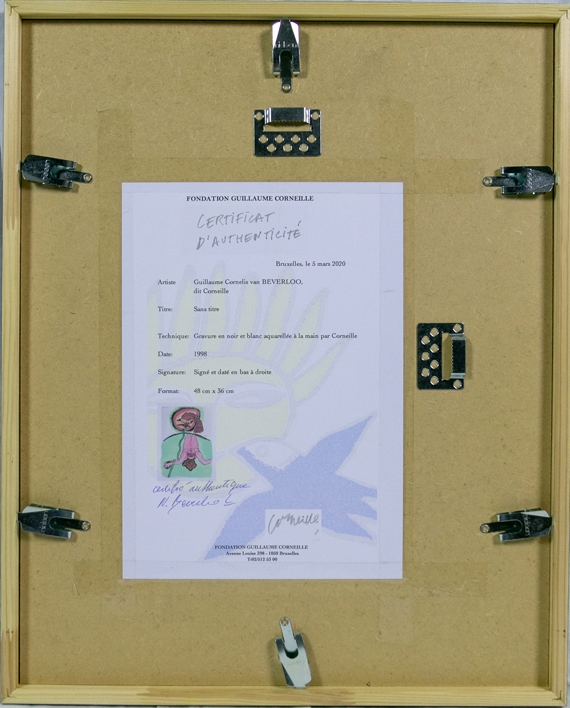 Wordt afgeleverd met een certificaat van de Fondation Guillaume Corneille. Zowel werk als certificaat bevatten de reliëfstempel.