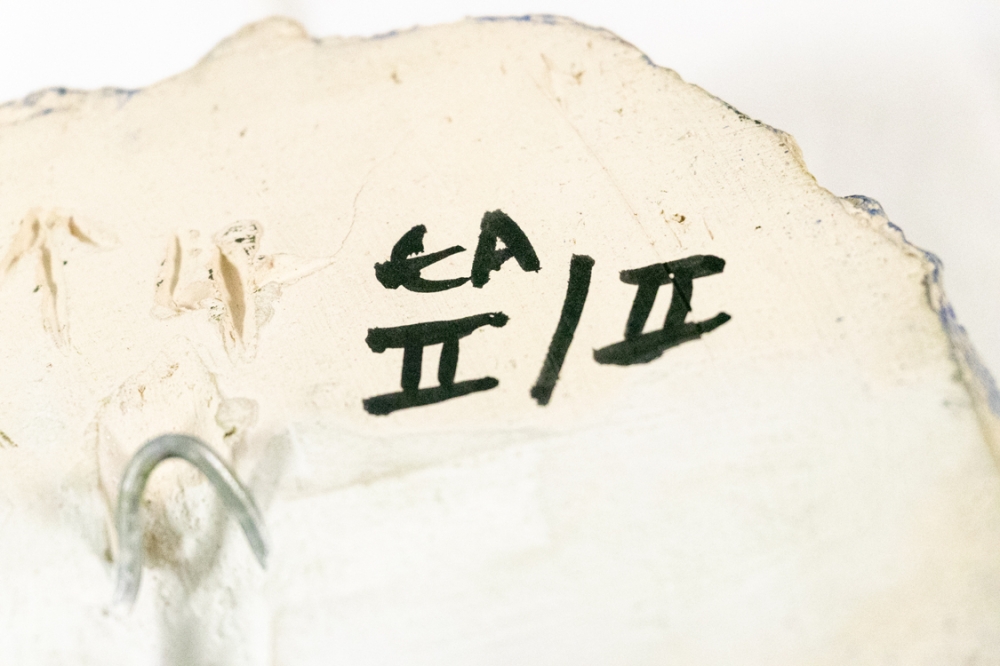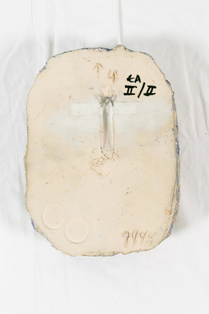 Gemengde techniek (keramiek) van Bram Bogart uit 1998. Gesigneerd aan de zijkant mbv een impressie in de keramiek. Uitgegeven door Atelier Studio JM Foubert, Delille Parijs. Het werk is (Romeins) genummerd als 2/2 EA.