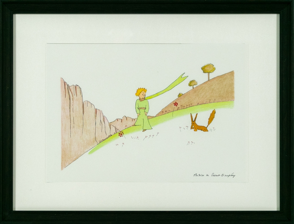 Litho van "The Little prince" op basis van de originele aquarellen voor het boek "The little Prince" was zijn meest gevierde boek waarvoor hij ook deze illustraties/aquarellen maakte.