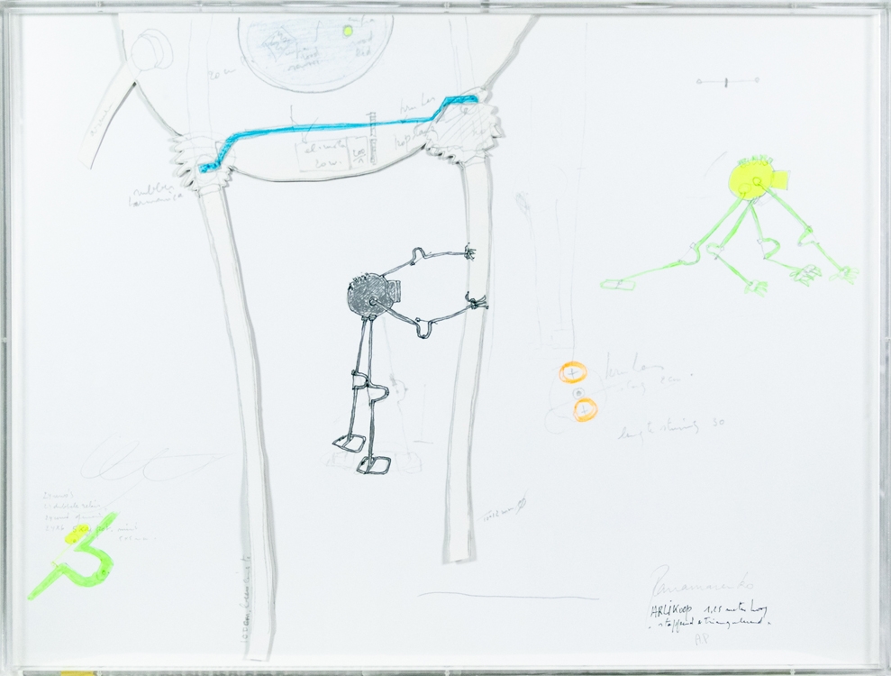Collage by Panamarenko, based on a lithograph. Some pieces of the arlikoop are mounted elevated and the work is in a new, unused plexi box. This collage was signed and numbered by hand by Panamarenko. The edition is 75 copies + 25 with Roman numerals numbered AP.