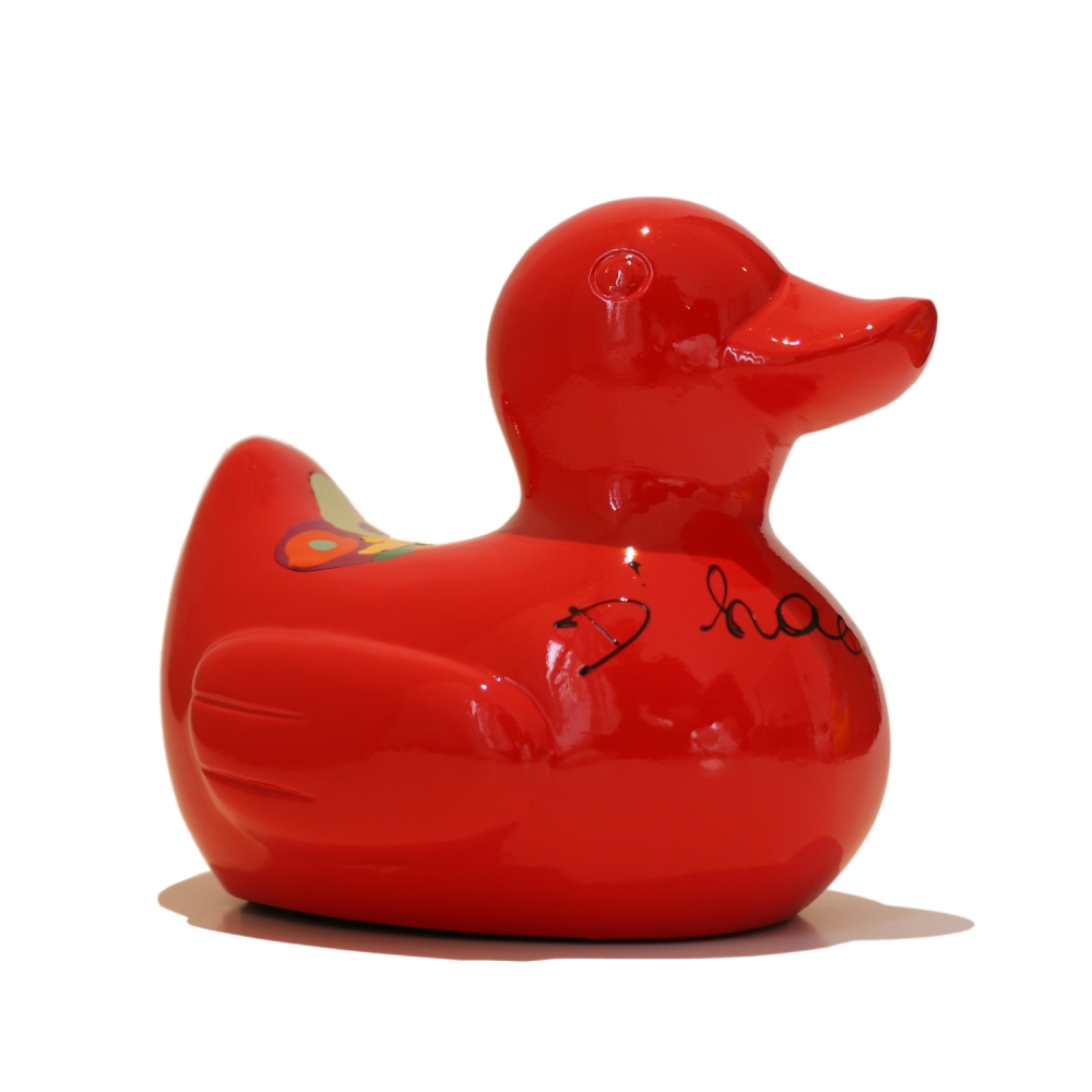 Deze sculptuur werd uniek met de hand beschilderd door Hannes D'Haese. Nadien afgewerkt met een vernislaag zodat deze waterbestendig is. Met certificaat uitgegeven door de Hannes D'Haese shop. In nieuwstaat. Deze sculpturen zijn een verwijzing naar de publieke installatie die Hannes D'Haese uitvoerde voor de gemeente Middelkerke. Meer info op https://www.middelkerke.be/en/sunny-day-paradise
