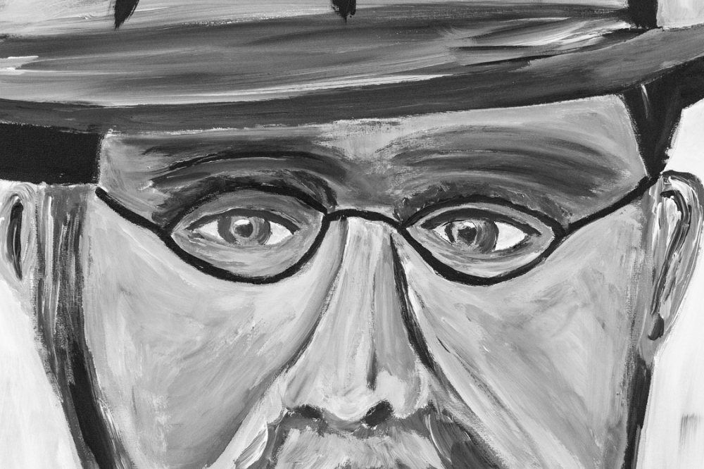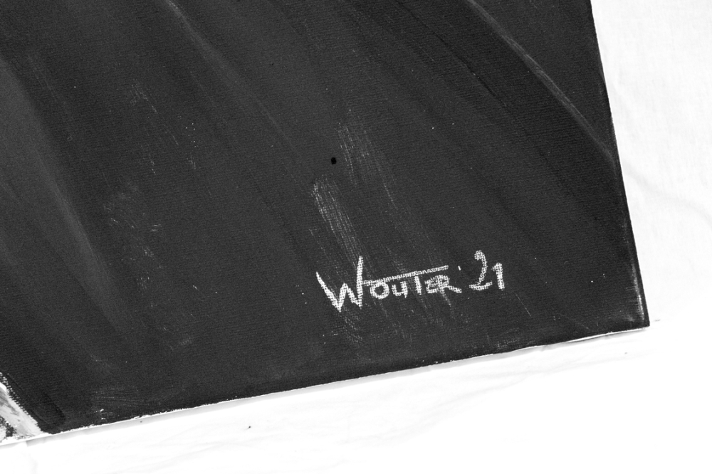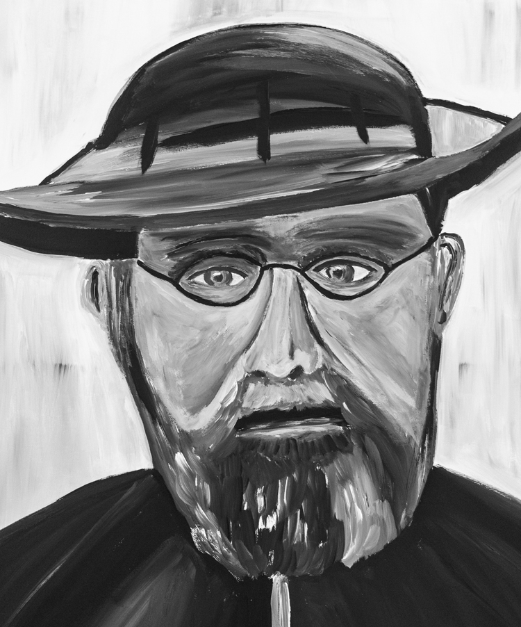 Original, unique painting with acrylic paint on canvas by the Flemish Minister of Welfare and Public Health Wouter Beke, an image of Father Damien, donated for the auction in favor of Damien Foundation.